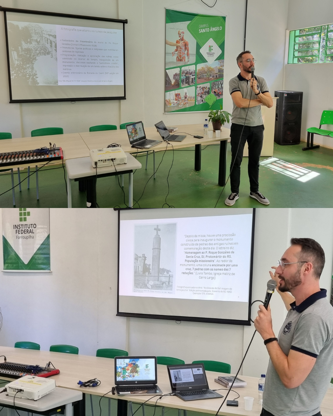 A formação ocorreu no dia 10 de setembro de 2025, no auditório do campus, com a palestra “Patrimônio das Missões: entre as políticas de preservação do passado e os desafios do presente”, proferida pelos palestrantes: