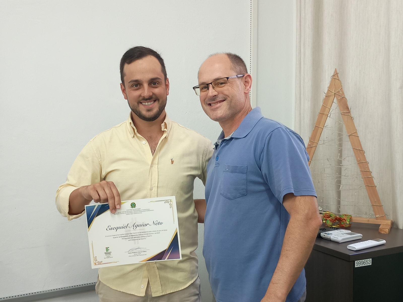 As cerimônias foram realizadas na sala da Direção-Geral do campus e contaram com a presença do diretor-geral, Paulo Roberto Cecconi Deon; dos coordenadores dos respectivos cursos, professor Daniel Boemo (ADS) e professor Thiago Della Nina Hidalgo (Agronomia); além da condução da chefe de gabinete substituta, servidora Silviana Delavechia Gibicoski. Amigos e familiares dos formandos também acompanharam os atos, tornando o momento ainda mais significativo para os novos profissionais.