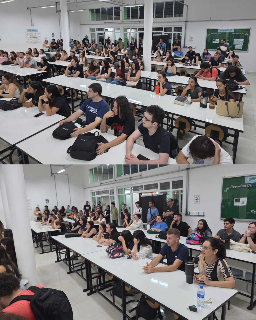 Logo após esse momento coletivo, os estudantes foram acompanhados pelos docentes e coordenadores de seus respectivos cursos. Durante essa etapa, foram repassadas orientações essenciais sobre o funcionamento das graduações, garantindo que os novos acadêmicos iniciem suas trajetórias bem informados.