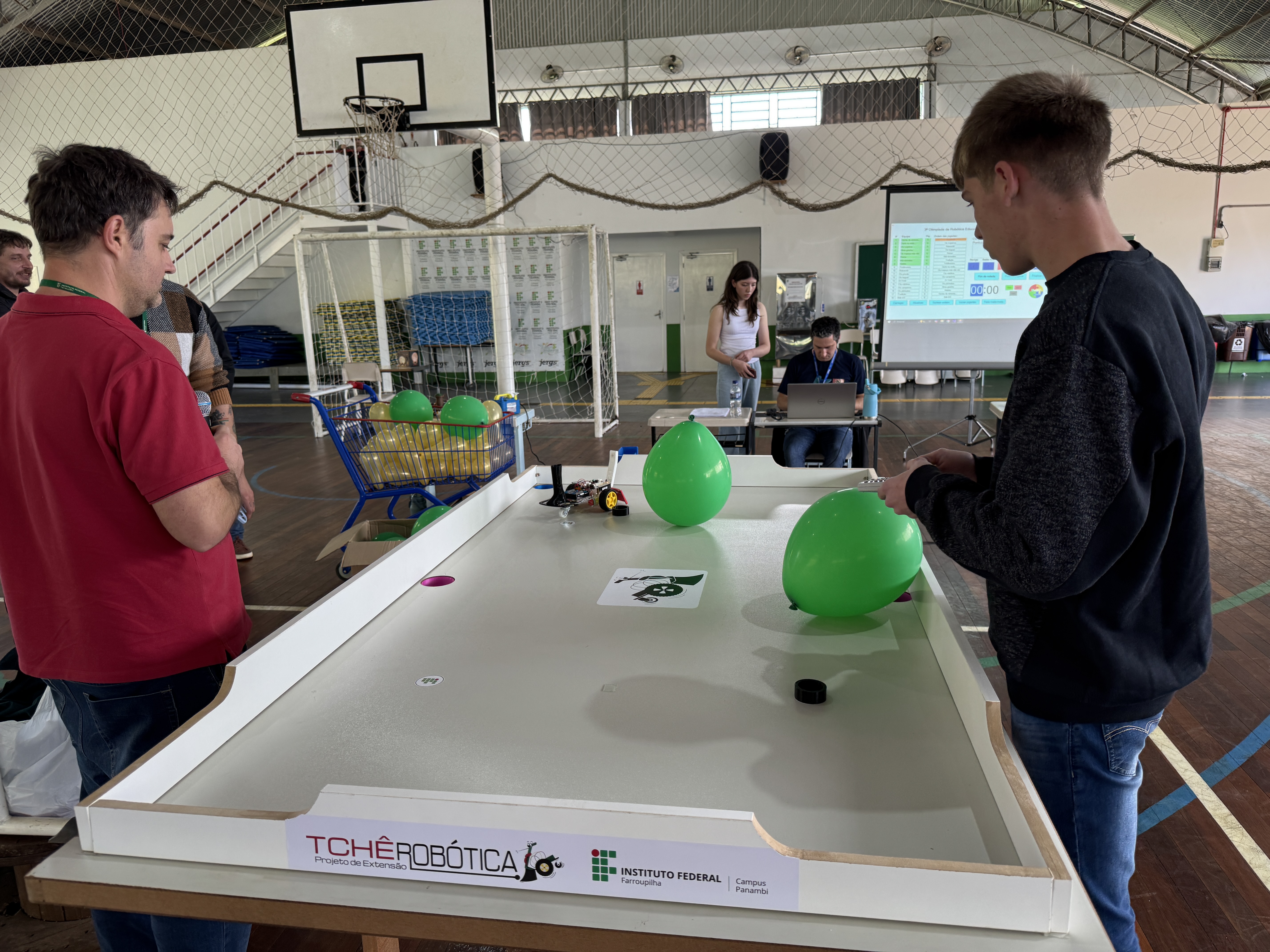 O evento contou com a participação de 18 equipes de estudantes das nove escolas de Ensino Fundamental do município. O desafio consistiu em guiar um carrinho robótico para direcionar discos, estourar e desviar de balões em uma mesa no estilo “sinuca”.