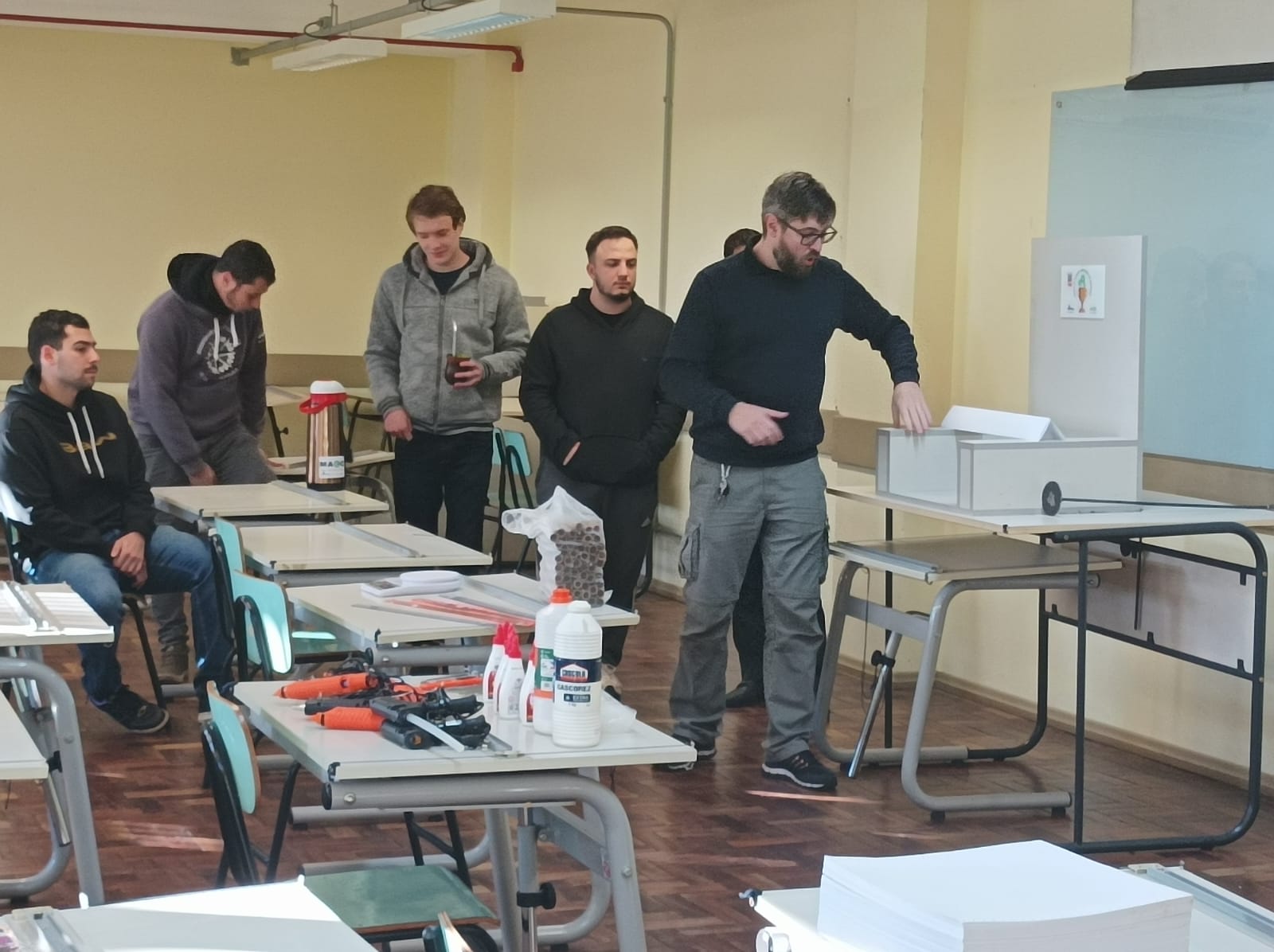No dia 05 de julho de 2025, estudantes dos 3º anos dos Cursos Técnicos Integrados ao Ensino Médio do IFFar – Campus Alegrete participaram da oficina “Construção de Pontes de Papel”, realizada na Universidade Federal do Pampa (UNIPAMPA), Campus Alegrete. A atividade foi promovida a convite do professor Luis Kosteski, docente da área de Engenharia Civil e coordenador do Projeto de Extensão, com a colaboração da engenheira civil e professora Marília Tamiosso, além de acadêmicos do curso de Engenharia Civil da UNIPAMPA.