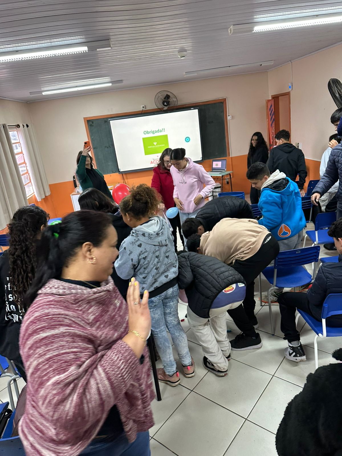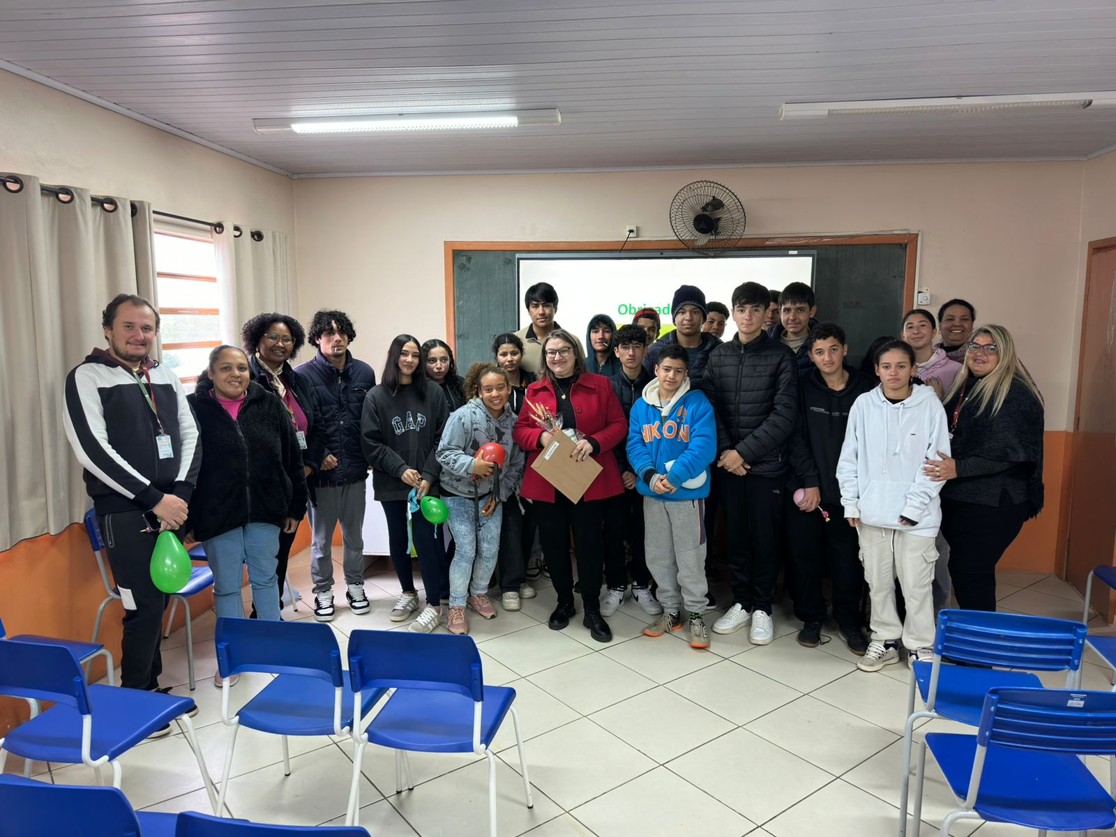 Marileia Marchezan é psicanalista, mestre em Tecnologias Educacionais em Rede pela UFSM, especialista em Psicanálise, Psicopatologia e Psicoterapia do Adolescente, além de possuir formação em Letras. Com mais de 30 anos de atuação na rede estadual de ensino, ela trouxe uma abordagem acolhedora e informativa, promovendo dinâmicas de interação entre os participantes, que incluíram estudantes e profissionais do programa. Confira alguns dos registros da atividade: