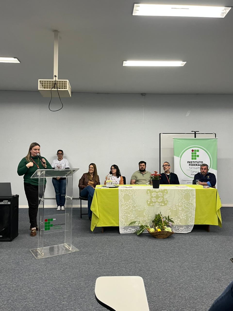 O Instituto Federal Farroupilha – Campus Alegrete realizou, na quarta-feira, 8 de outubro, a aula inaugural da Pós-Graduação em Gestão Escolar. A atividade contou com a participação da Prof.ª Dra. Letícia Ramalho Brittes, do IFFar – Campus Jaguari, integrante do Grupo de Estudos e Pesquisas sobre Gestão Educacional, Currículo e Políticas Públicas para a EPT (GECPOL).