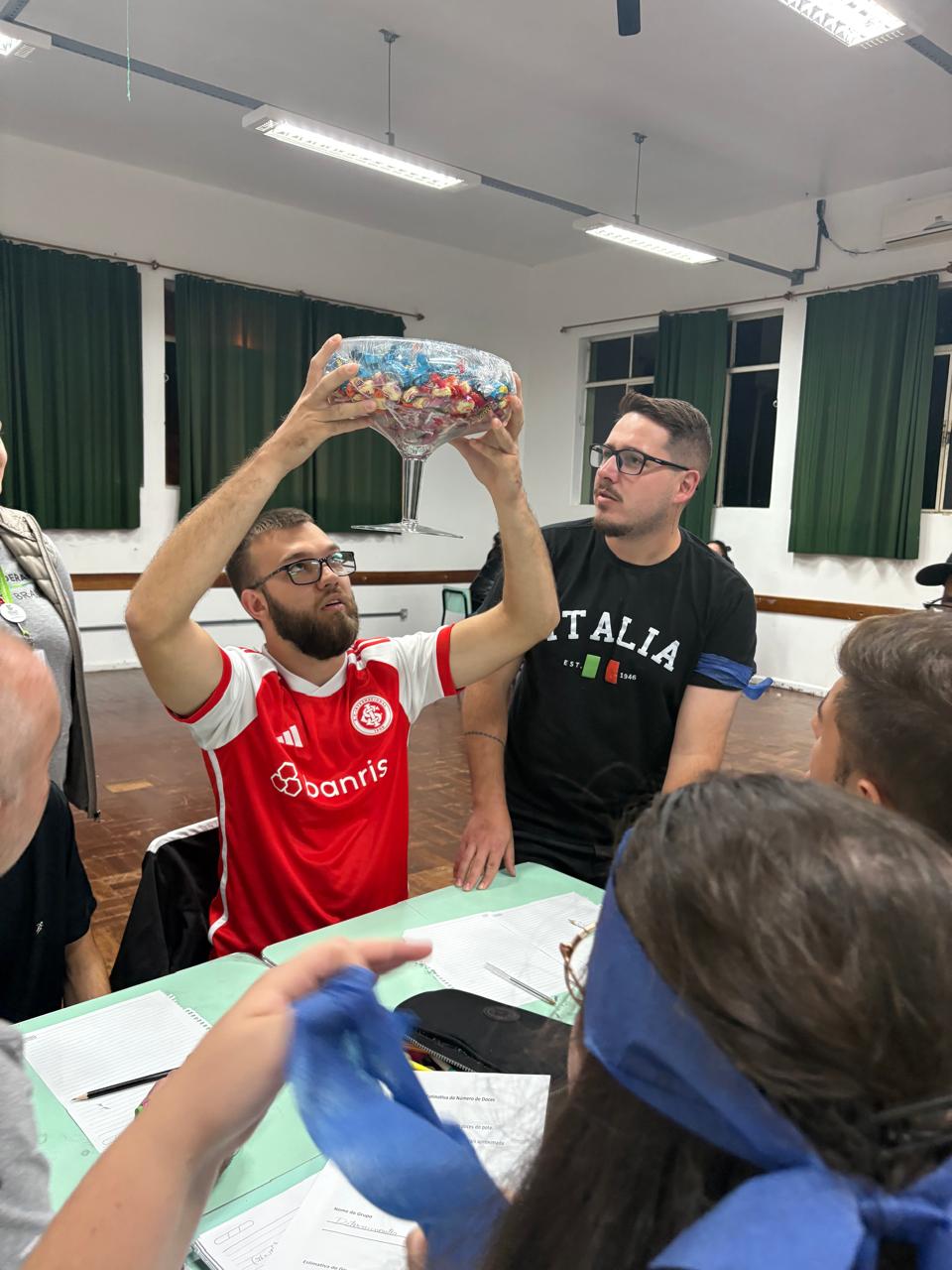 Para celebrar a data, docentes do Curso de Licenciatura em Matemática do IFFar – Campus Frederico Westphalen desenvolveram uma gincana cultural com os discentes do curso. Na atividade foram organizados grupos formados por estudantes dos diferentes semestres do curso, visando à integração dos mesmos e a execução de diversas tarefas envolvendo desafios com jogos matemáticos, enigmas e a resolução de problemas.