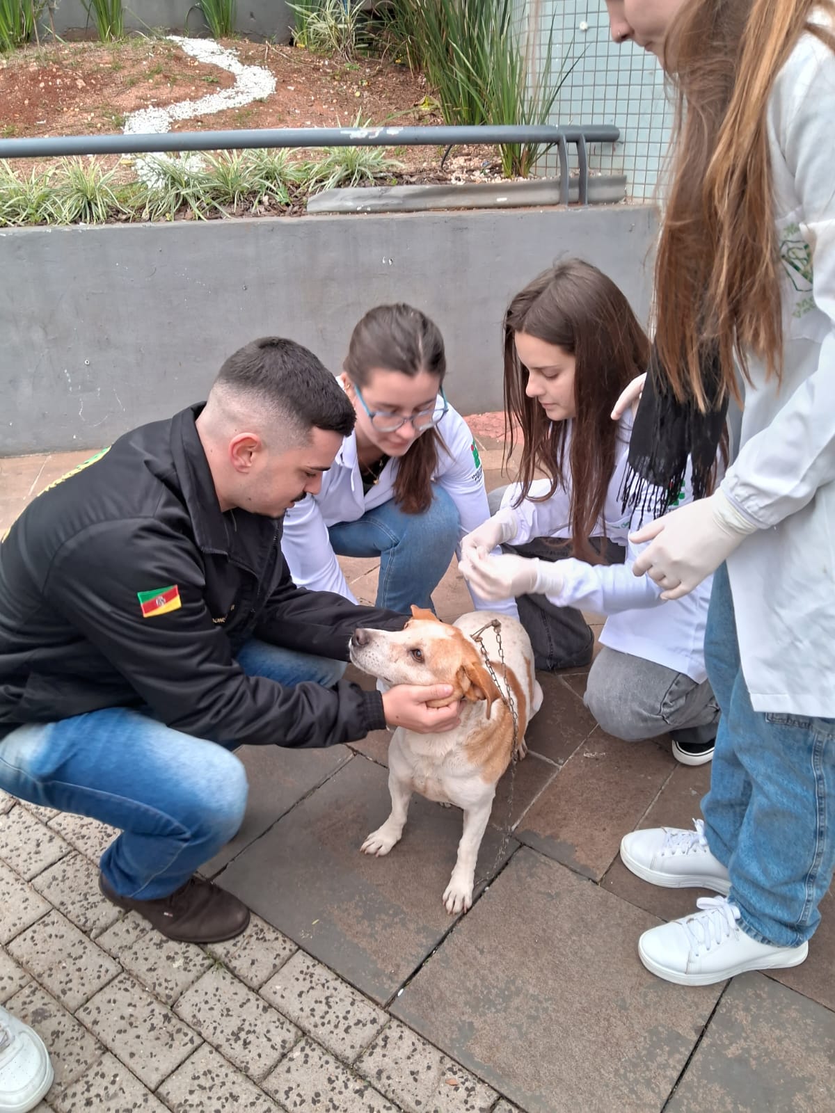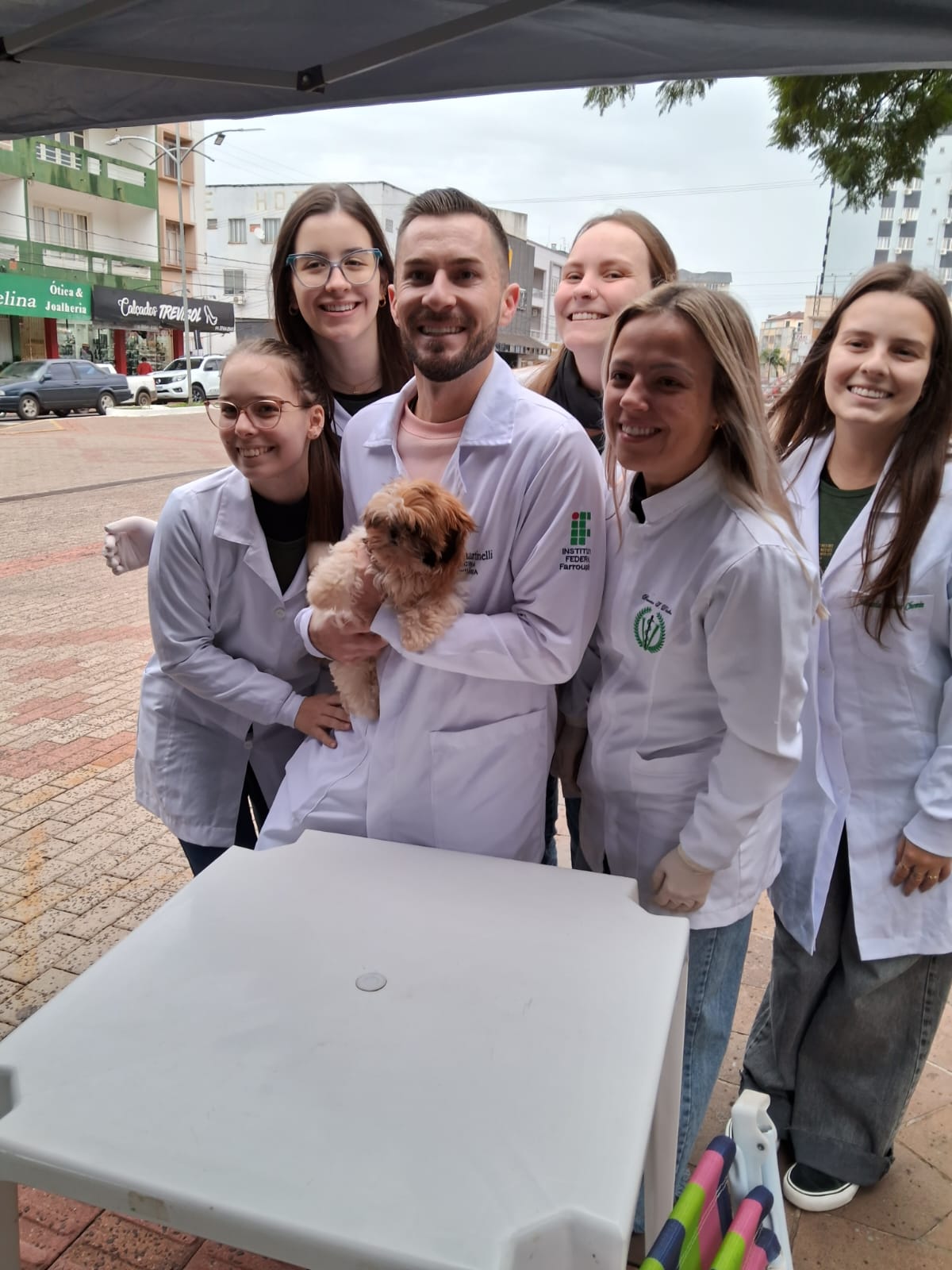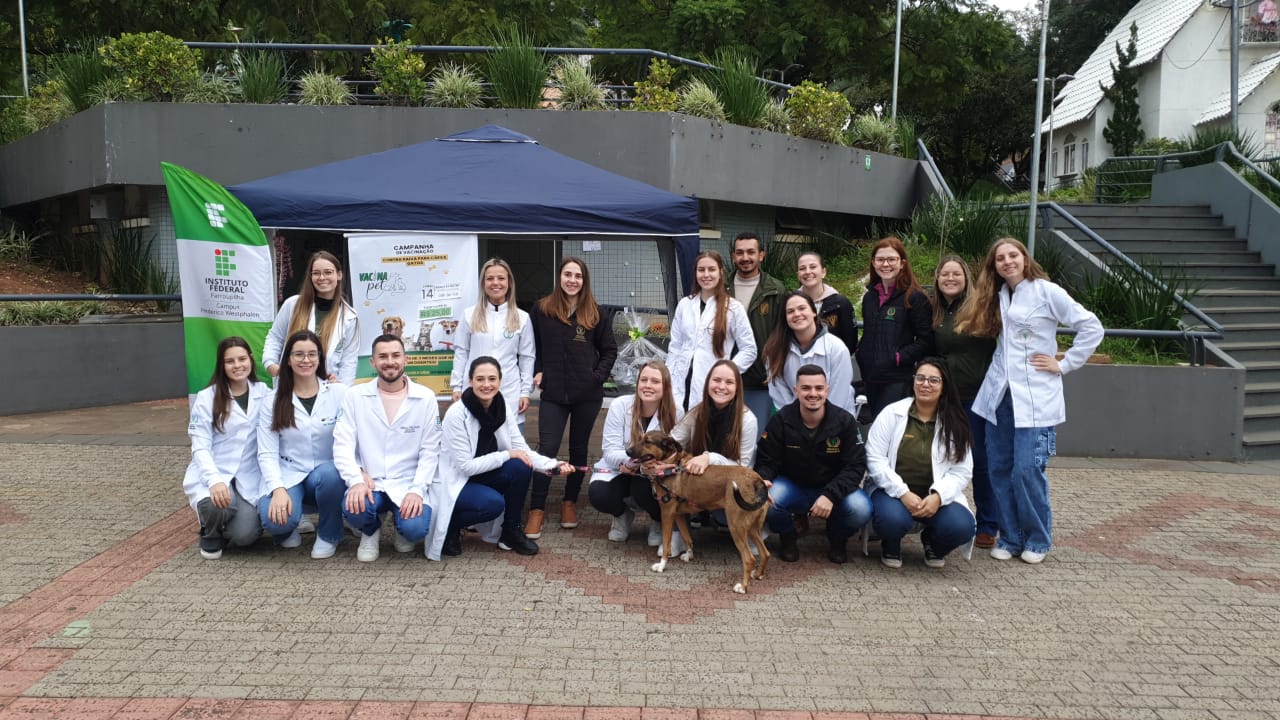 No sábado, 14 de junho, a quinta turma de Medicina Veterinária (ATMV-05) do IFFar Campus Frederico Westphalen realizou uma campanha de vacinação contra a raiva, voltada para cães e gatos, na Praça da Matriz. A ação teve como objetivo promover a saúde animal e conscientizar a comunidade sobre a importância da imunização.