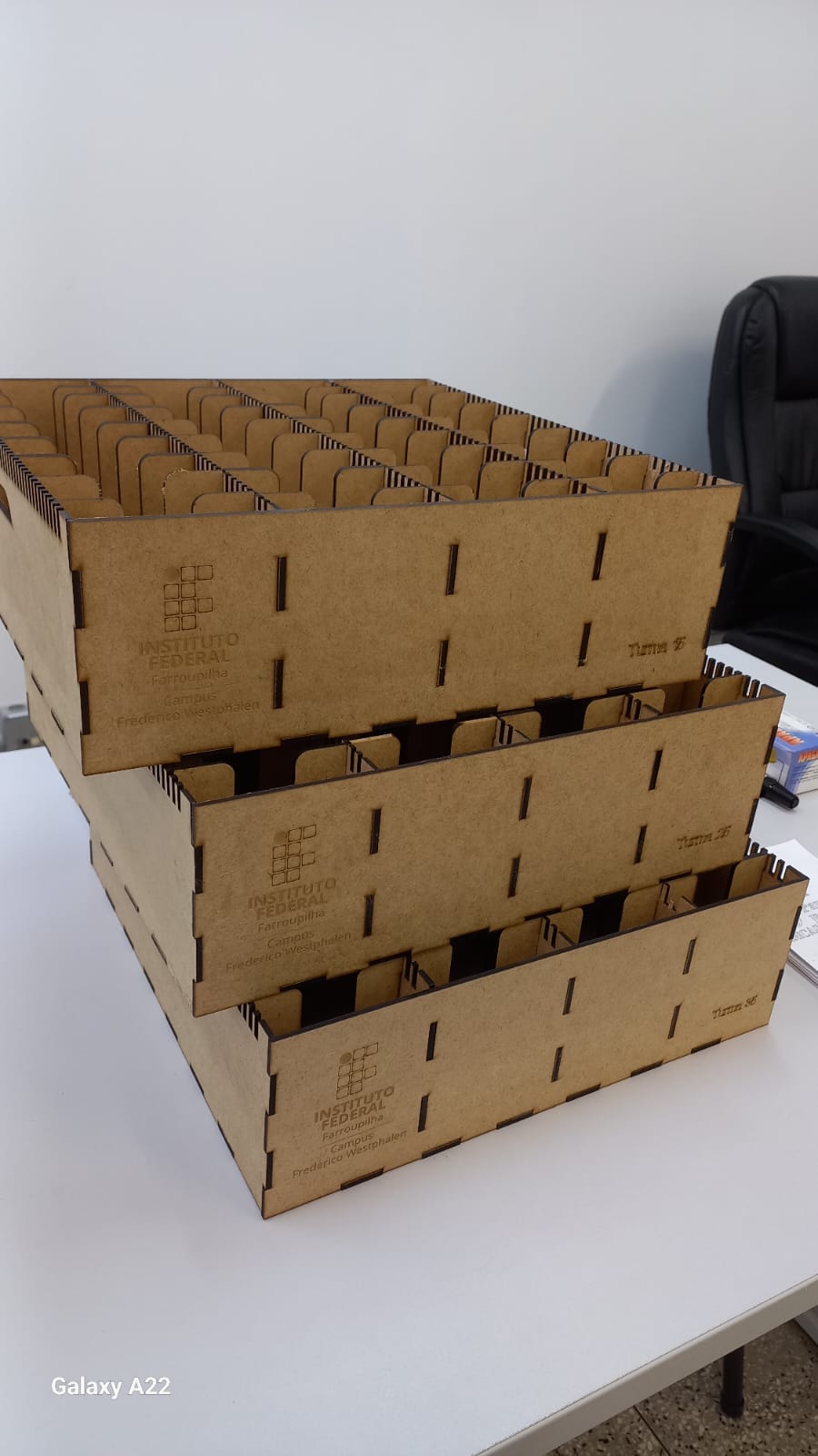 Enquanto se elaboram orientações definitivas do Campus Frederico Westphalen para a guarda e armazenamento dos AEPPs, as quais complementarão e darão suporte à Instrução Normativa, a Coordenação do Coordenação do Curso Técnico Integrado em Administração distribuiu caixas personalizadas para a guarda dos AEPPs em cada sala de aula. A fabricação e montagem das caixas foi fruto da parceria da Coordenação com o Laboratório IF MAKER do campus, que é um dos ambientes de inovação interessados em encontrar soluções criativas para a comunidade interna. O professor Arthur ressalta que a Instrução Normativa nº 3, embora restritiva, “vem atender aos anseios da comunidade local, regional e nacional principalmente quanto ao uso dos celulares entre alunos menores de idade que frequentam o ensino médio integrado”.