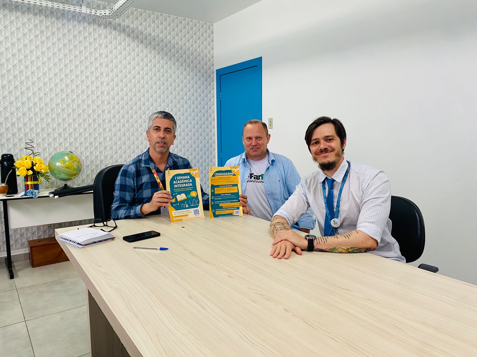 Os coordenadores dos cursos de Licenciatura em Matemática e Licenciatura em Letras do Instituto Federal Farroupilha – Campus Frederico Westphalen, professores Carmo Henrique Kamphorst e César Augusto González, realizaram, na última sexta-feira (3/10), uma reunião com João Batista Lima de Souza, Coordenador da 20ª Coordenadoria Regional de Educação (CRE), sediada em Palmeira das Missões. Durante o encontro, foi feito o convite oficial para que docentes da rede estadual de ensino participem da Primeira Semana Acadêmica Integrada das Licenciaturas, evento que reunirá acadêmicos, professores e pesquisadores para o compartilhamento de saberes e experiências sobre a docência na Educação Básica. A I Semana Acadêmica Integrada ocorrerá de 13 a 17 de outubro de 2025, no turno noturno (das 19h às 22h), nas dependências do IFFar – Campus Frederico Westphalen. A programação inclui palestras, oficinas pedagógicas, mesa-redonda, apresentação de trabalhos científicos e relatos de experiência, além de um momento cultural e de confraternização no encerramento. Com o tema “Valorizando saberes e experiências na docência da Educação Básica”, o evento busca fortalecer o diálogo entre os cursos de licenciatura do campus e os professores da região, incentivando a integração entre formação inicial e prática docente. As inscrições estão abertas e podem ser realizadas pelo link https://abre.ai/mostraintegrada, com taxa de R$ 20,00 e direito a certificação de 20 horas. Docentes que desejarem submeter trabalhos devem realizar o cadastro como autor pelo endereço https://abre.ai/submissaolicenciaturas. A iniciativa reforça o compromisso do IFFar/FW com a formação de professores e com a valorização do ensino público de qualidade na região.