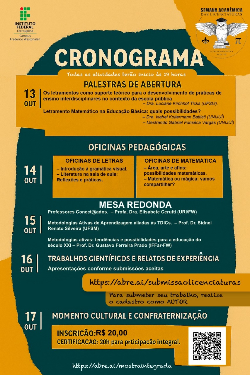 Coordenadores dos cursos de Licenciatura em Matemática e Letras do IFFar/FW convidam docentes da região para participar da I Semana Acadêmica Integrada