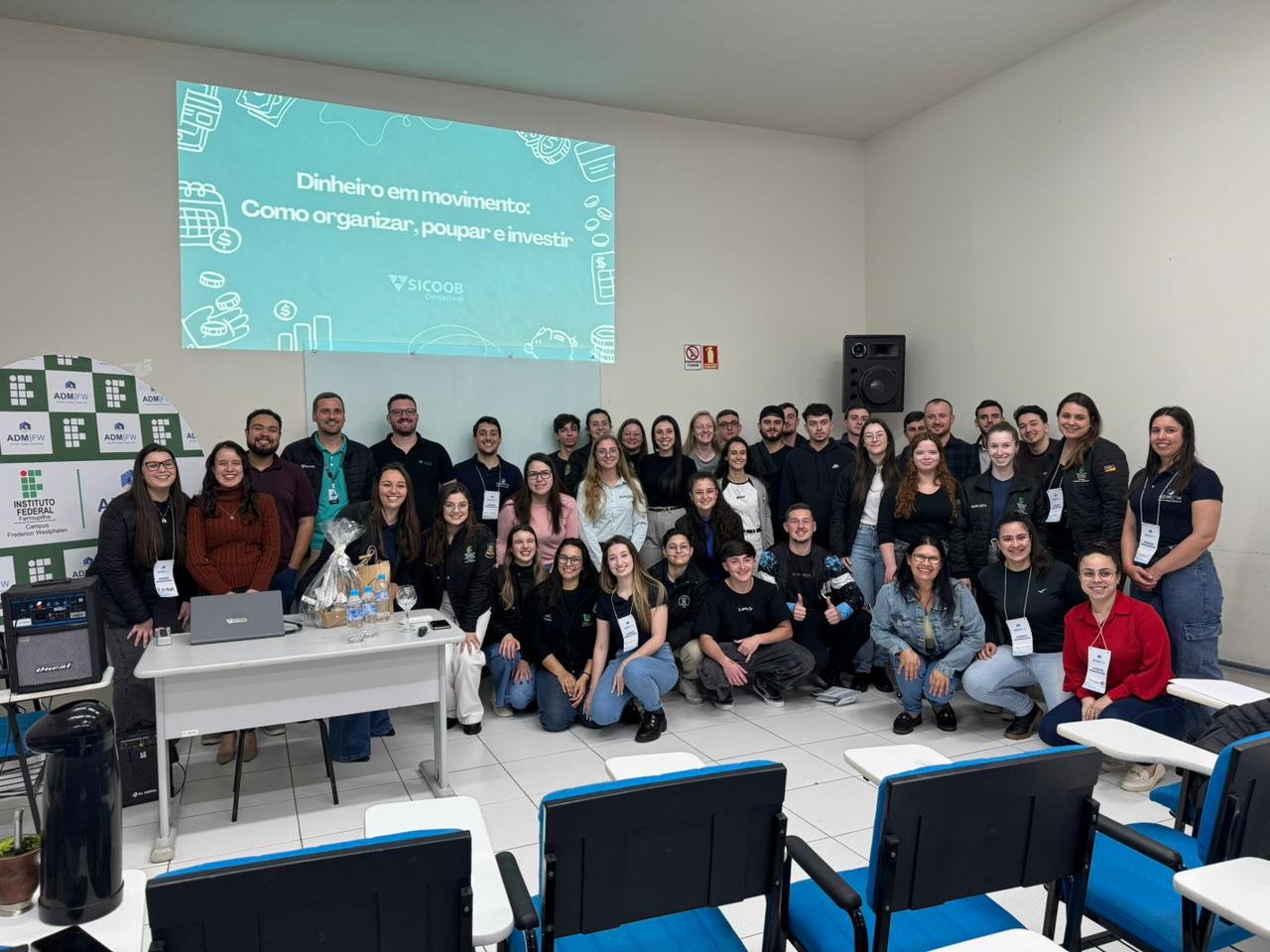 Ao mesmo tempo, os representantes do Sicoob, Luis Henrique Kist e Jaime Paulo Link Junior, conduziram a oficina “Dinheiro em movimento: Como organizar, poupar e investir”, com foco na educação financeira e na gestão eficiente dos recursos pessoais.