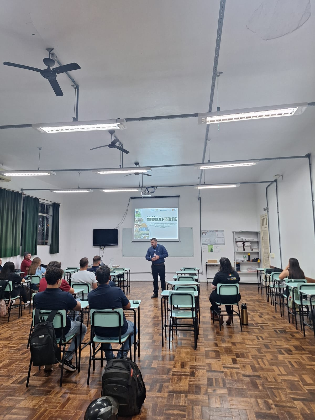 Em seguida, ocorreu o debate “Programa Terra Forte: Impulsionando a Agricultura Familiar e a Segurança Alimentar no Médio Alto Uruguai”, com a participação do Dr. Felipe Lorensini (EMATER) e mediação do Dr. João Batista Pellegrini, docente do curso. O painel apresentou experiências e resultados do programa, reforçando a relevância da agricultura familiar na promoção da segurança alimentar e do desenvolvimento regional sustentável.