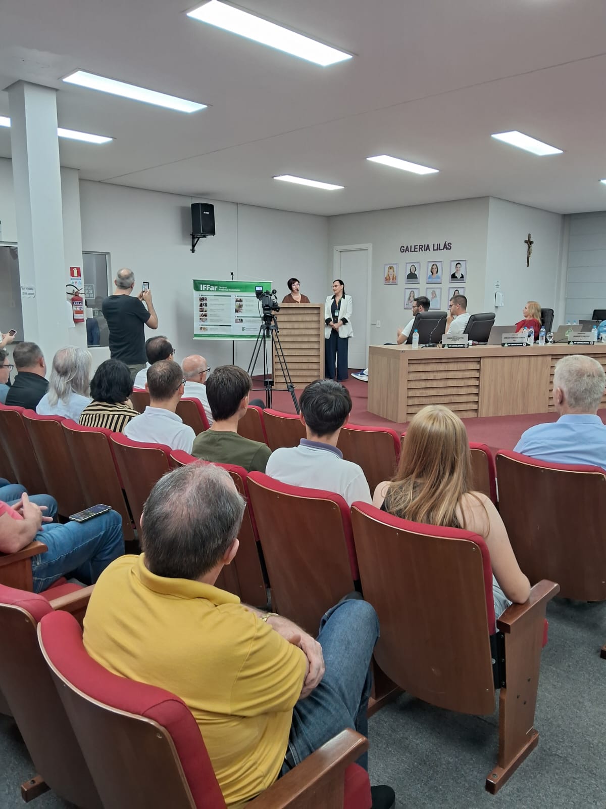 Em sua fala, a reitora do IFFar, professora Nídia Heringer, ressaltou a importância da presença de ex-alunos e ex-servidores do campus na sessão e destacou o papel dos Institutos Federais, criados em 2008 com uma proposta inovadora de educação pública, gratuita e de qualidade.