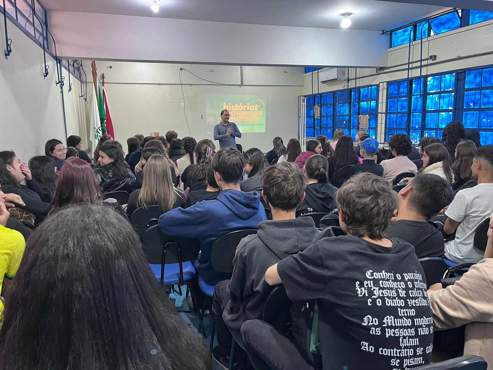 Finalizando as ações, no dia 28 de abril, foi promovida a palestra “Histórias Indígenas no Pampa”, ministrada pelo historiador Max Roberto Pereira Ribeiro. Esta atividade, que ocorreu no Centro de Referência - Santiago para as turmas do Curso Técnico Integrado em Administração, promoveu reflexões sobre a presença e os saberes dos povos indígenas na região sul, reforçando a importância da valorização e do reconhecimento das culturas originárias.