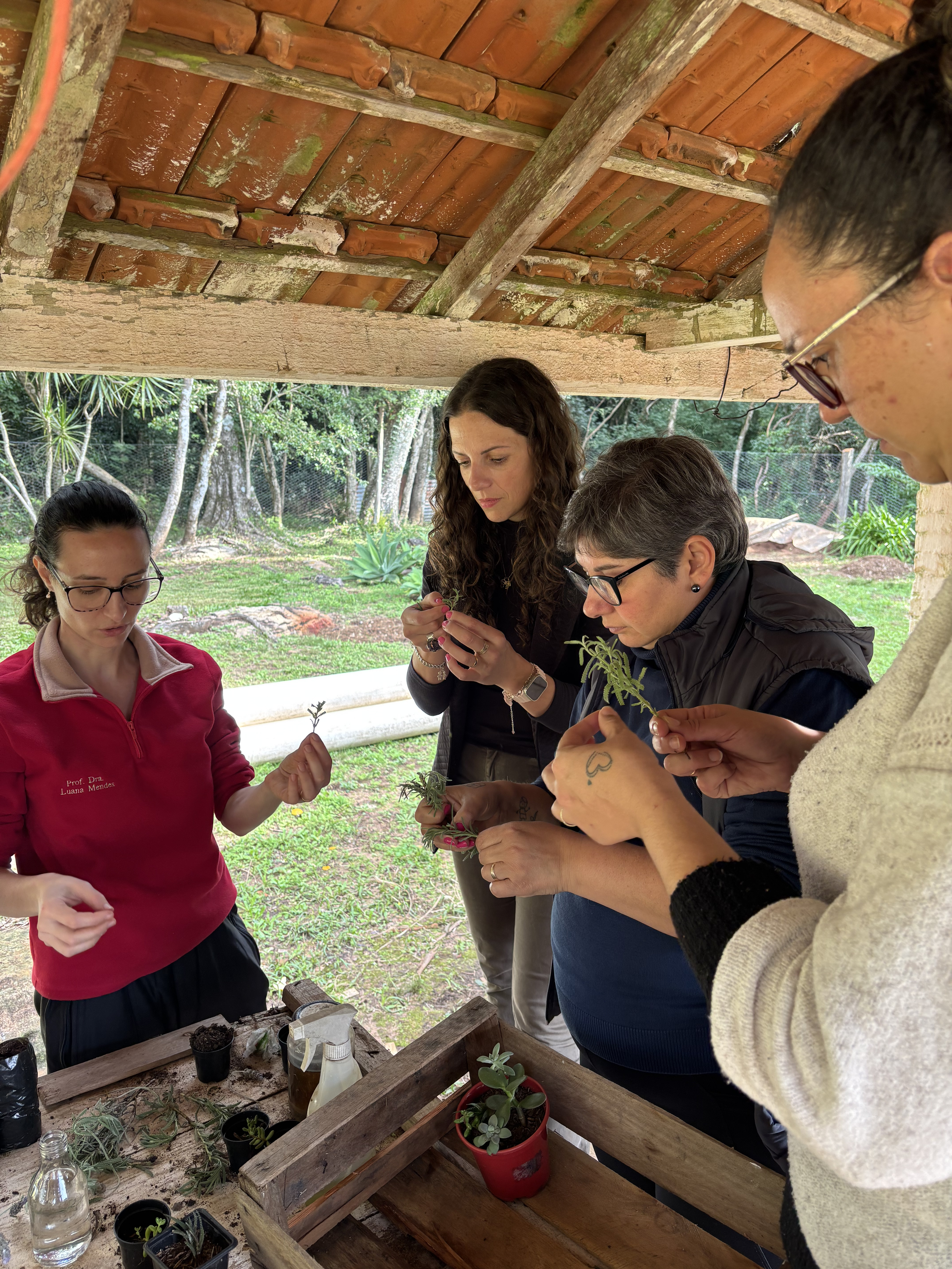 Durante a oficina, os participantes aprenderam sobre as características das suculentas, cuidados essenciais para o cultivo, preparo de substrato ideal, manutenção dos vasos e técnicas de propagação por folhas. Também foi abordada a multiplicação das lavandas por estaquia, incentivando práticas sustentáveis e acessíveis de jardinagem.