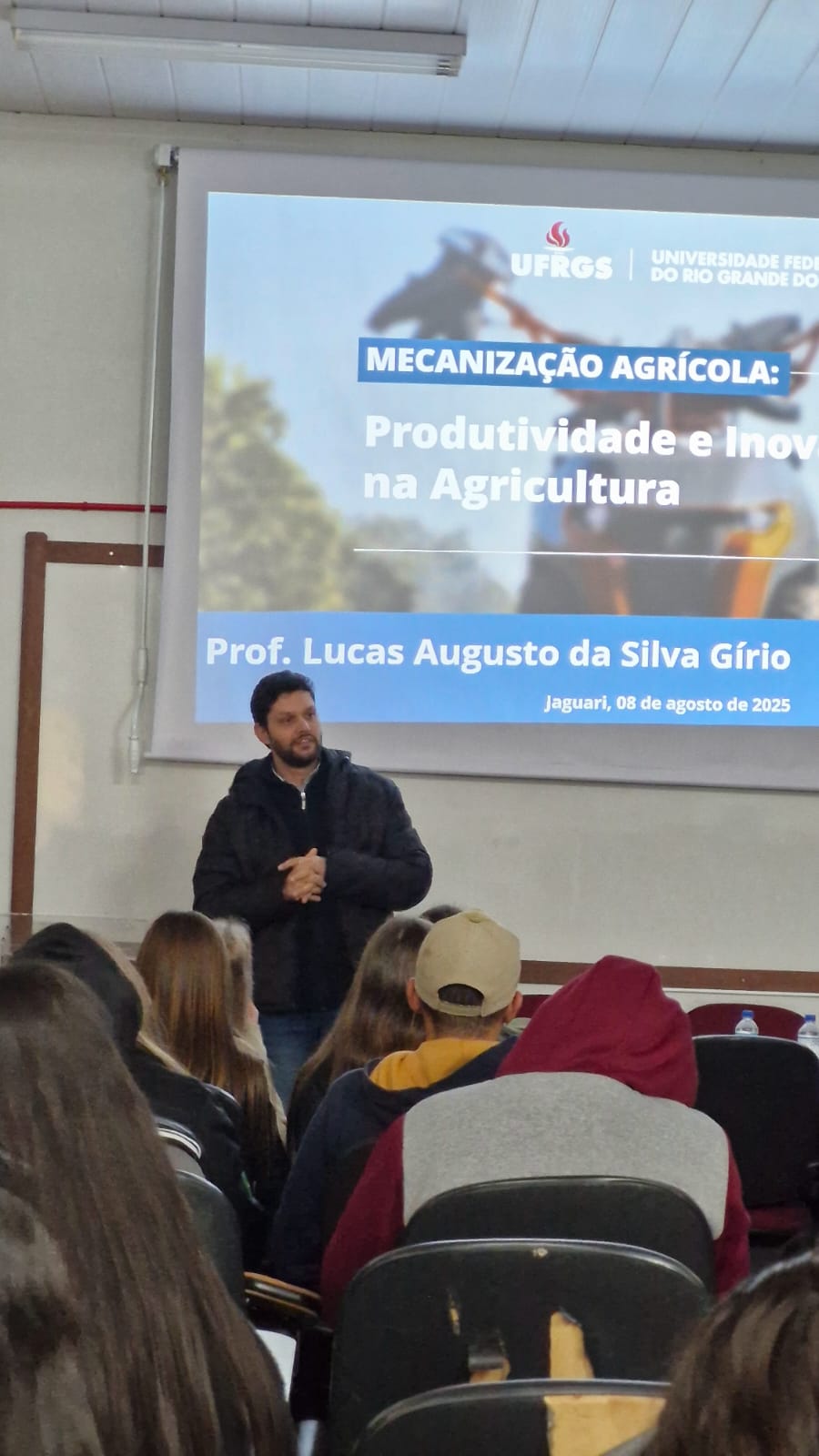 Os estudantes das turmas de 1º, 2º e 3º anos do curso Técnico em Agricultura Integrado participaram na sexta-feira, 8 de agosto de 2025, de palestras técnicas relacionadas a área de mecanização agrícola, ministrada pelo Palestrante Prof.º Lucas Augusto da Silva Girio(UFRGS) e ao uso de drones agrícolas, apresentado por Louner Bernardi(Empresa Boqueirão Serviços agrícolas com Drones).