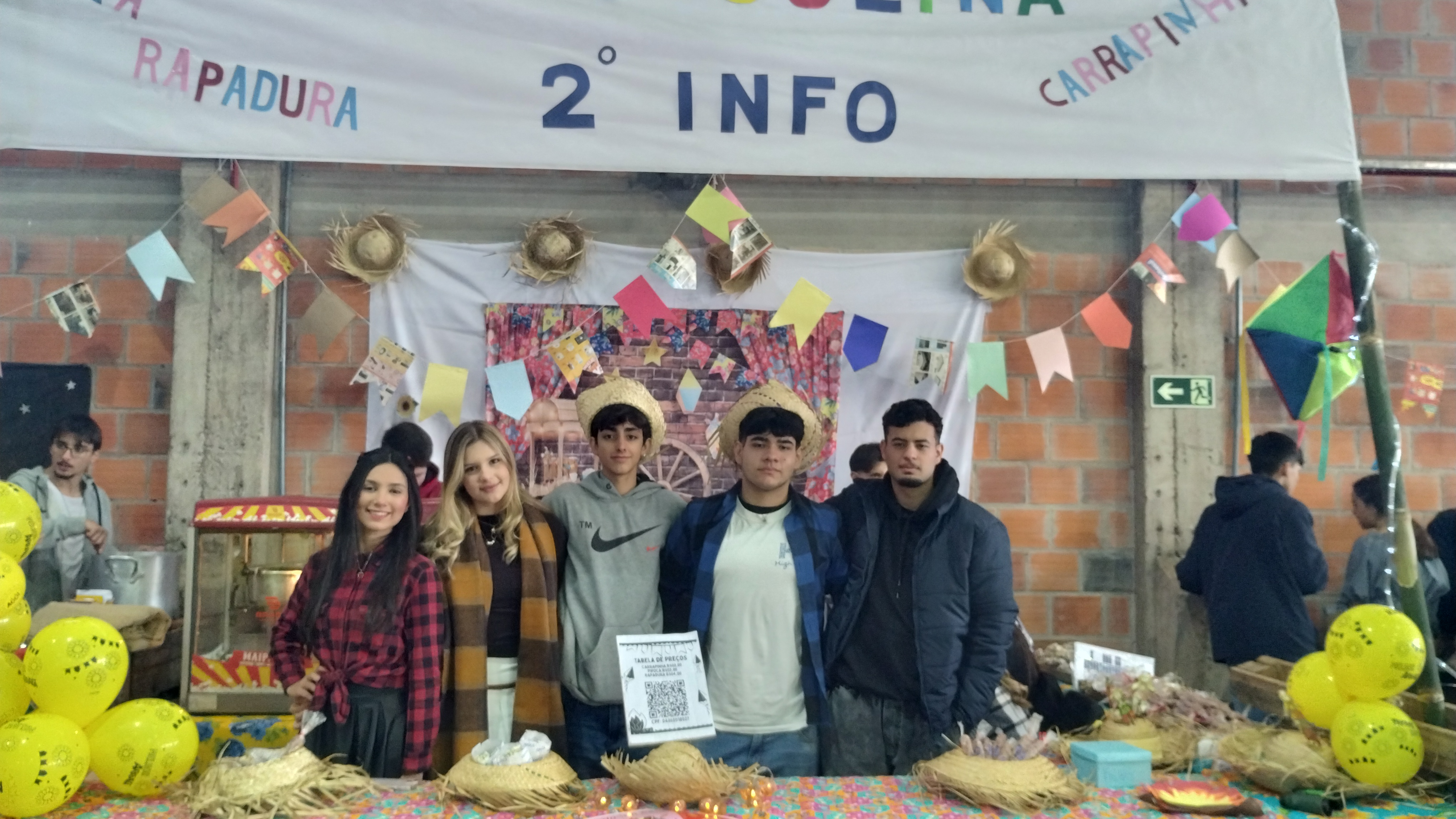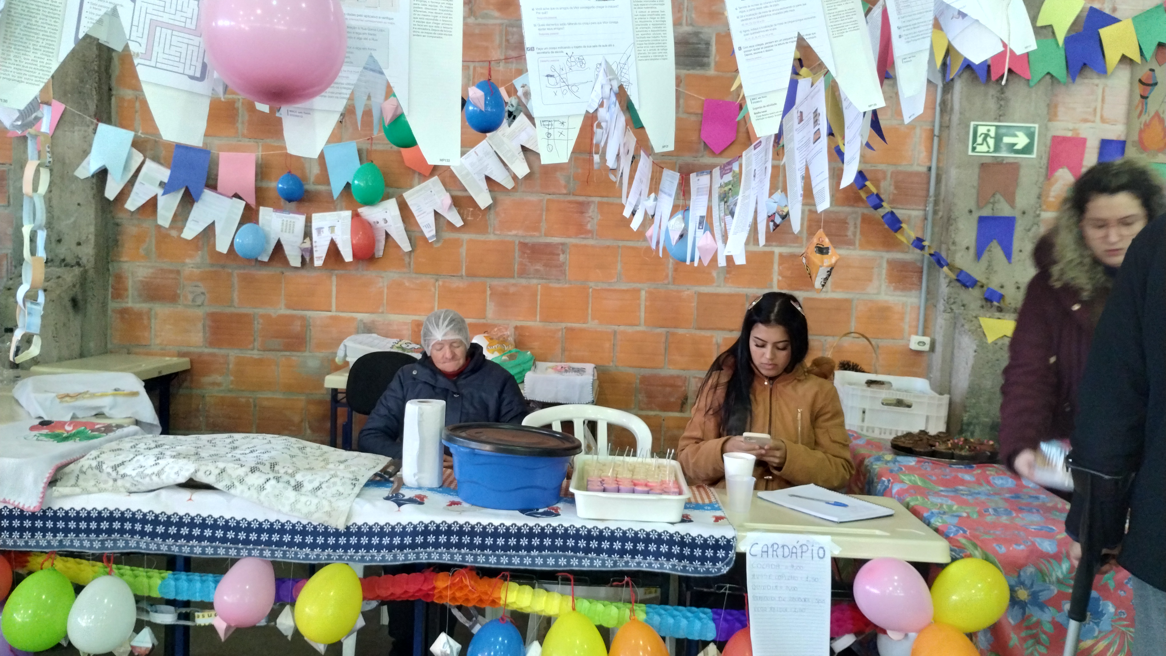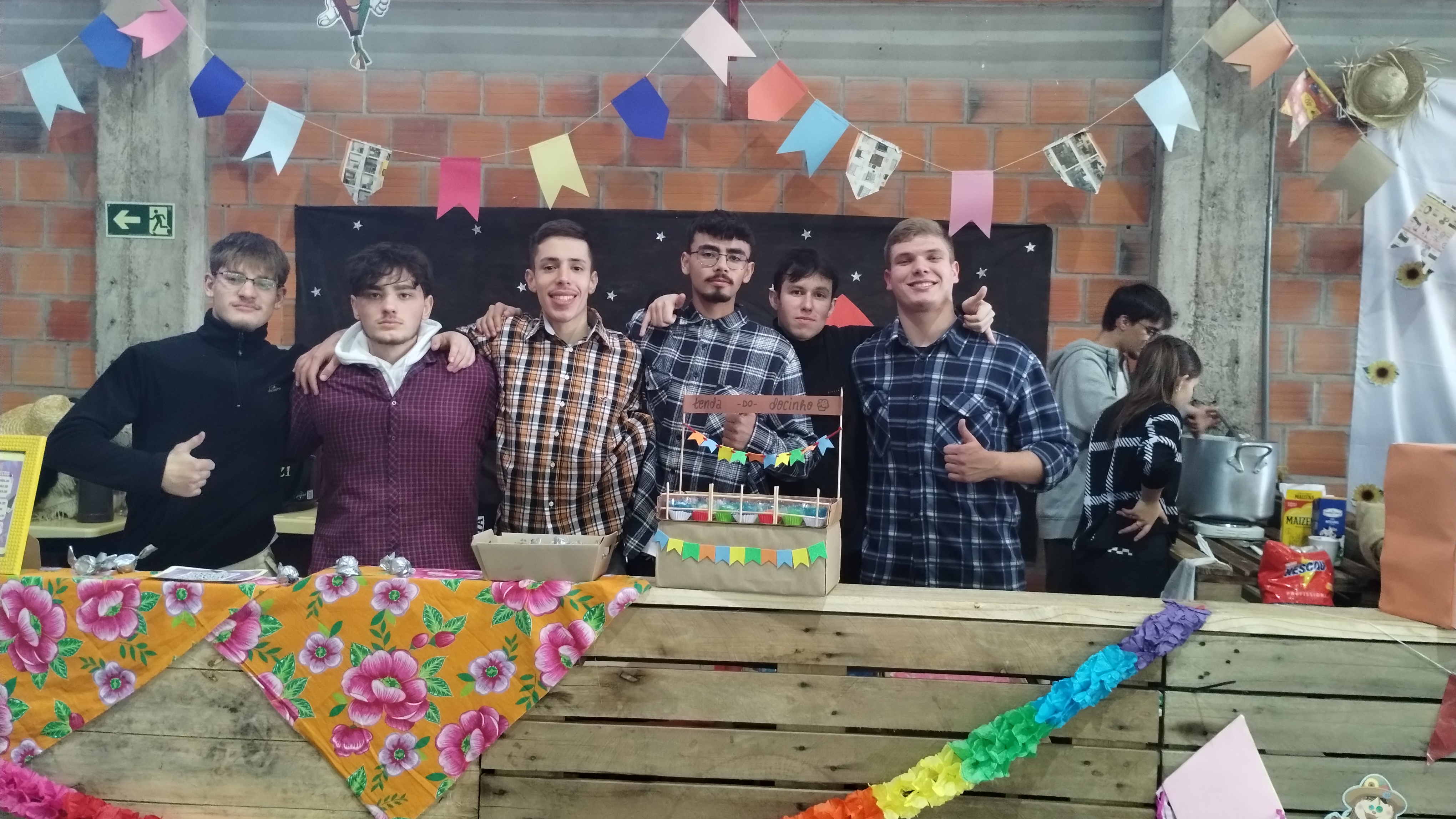 O ginásio estava dividido com várias bancas, que foram organizadas pelos/as estudantes, com o auxílio de servidores/as. As bancas foram divididas por curso e turma. Teve venda de quentão, chocolate quente, pastel, pipoca, crepes, cachorro-quente, docinhos, bolos, mousses, fotografia instantânea, touro mecânico, cadeia além de um espaço para o projeto Acolher, para o NIT e para setor de Saúde do Campus.