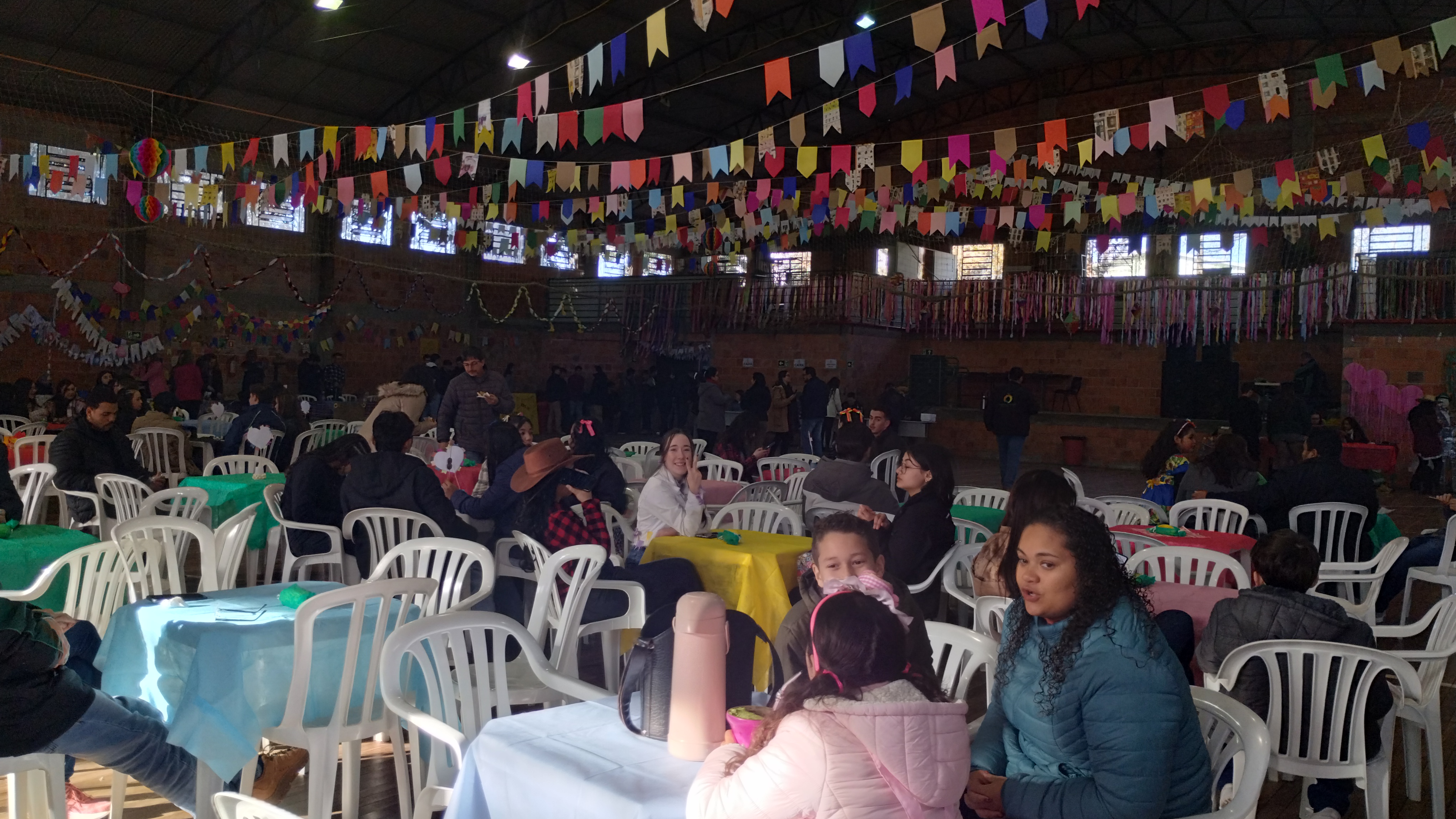O arraiá recebeu muitas pessoas, entre elas egressos/as que terminaram seus cursos no ano passado e retornaram para matar a saudade do campus e dos/as amigos/as.