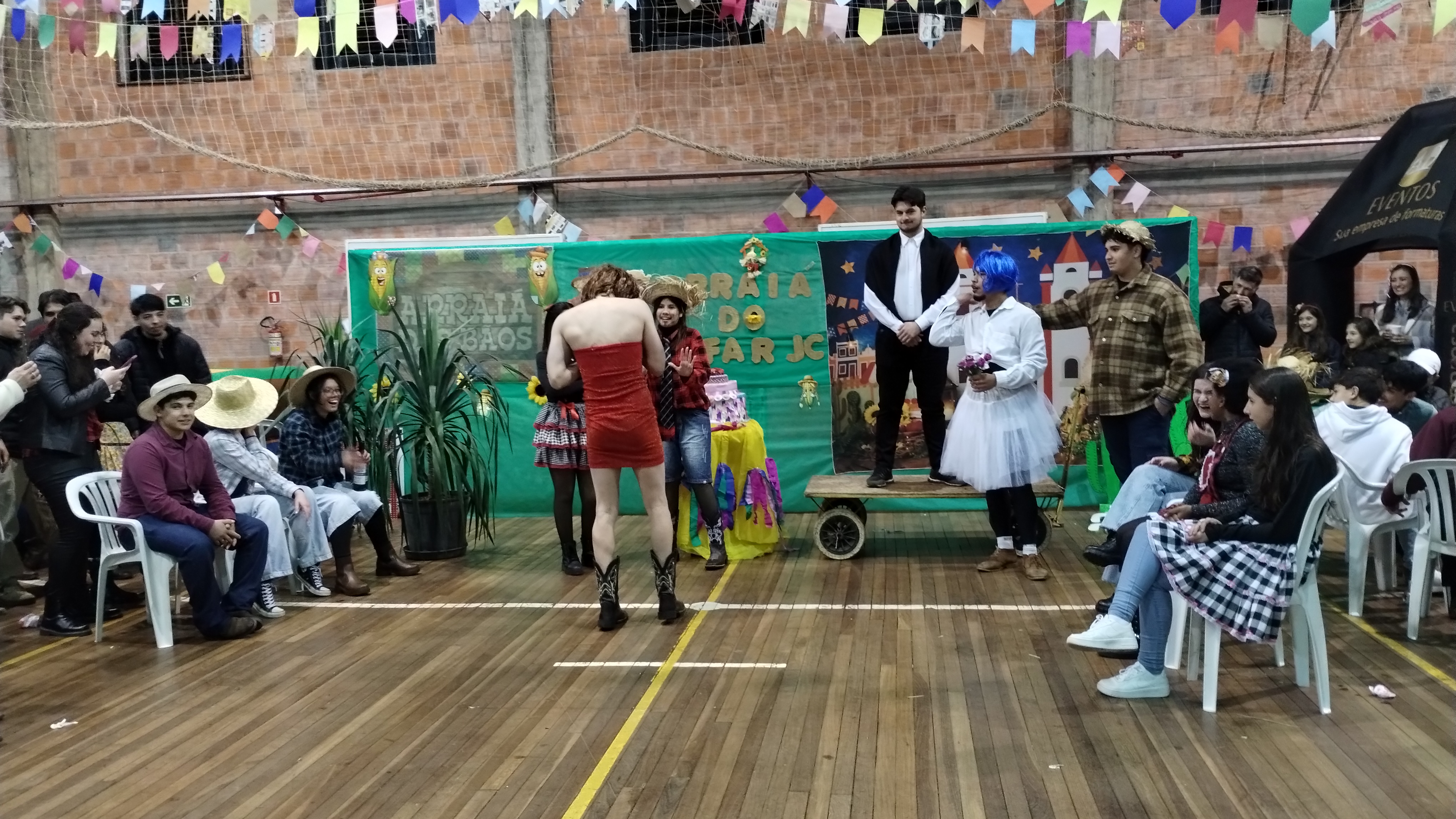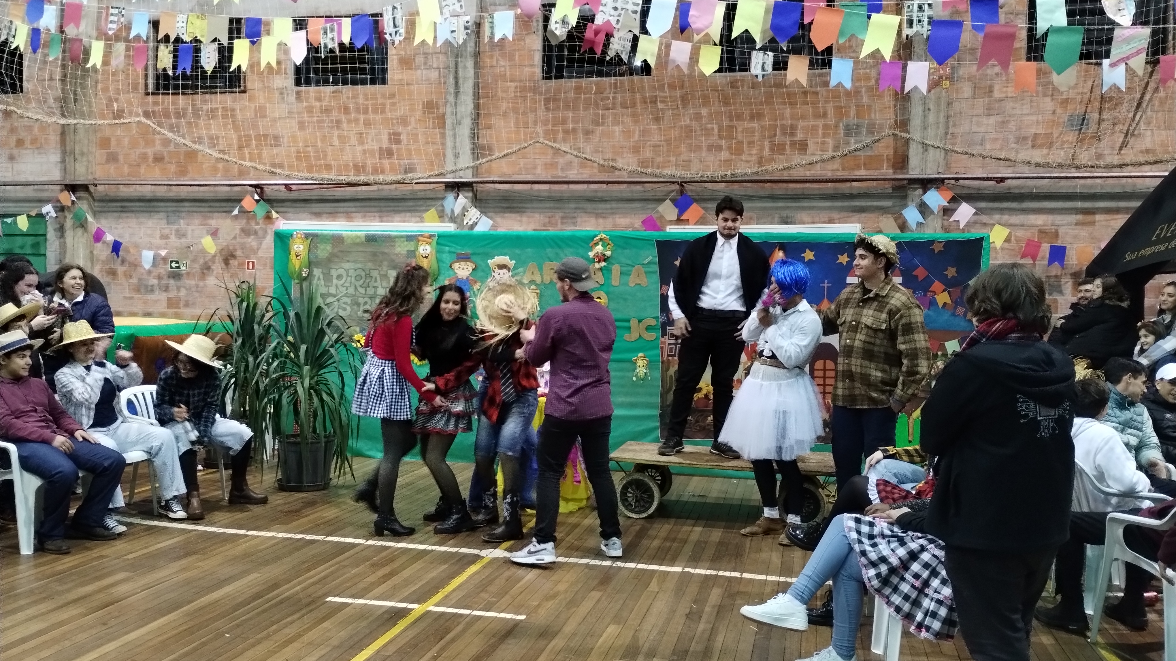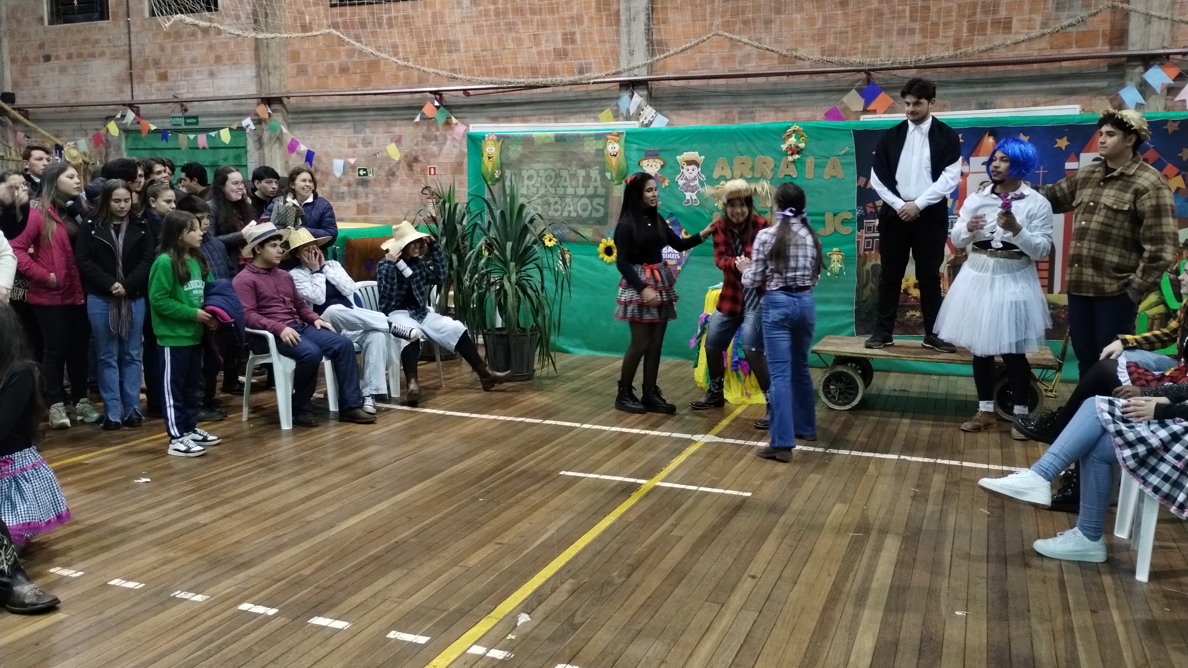 Durante o evento aconteceu o tradicional casamento caipira, encenado pelos/as estudantes, seguido pela apresentação da quadrilha, que convidou os/as presentes para que dançassem.