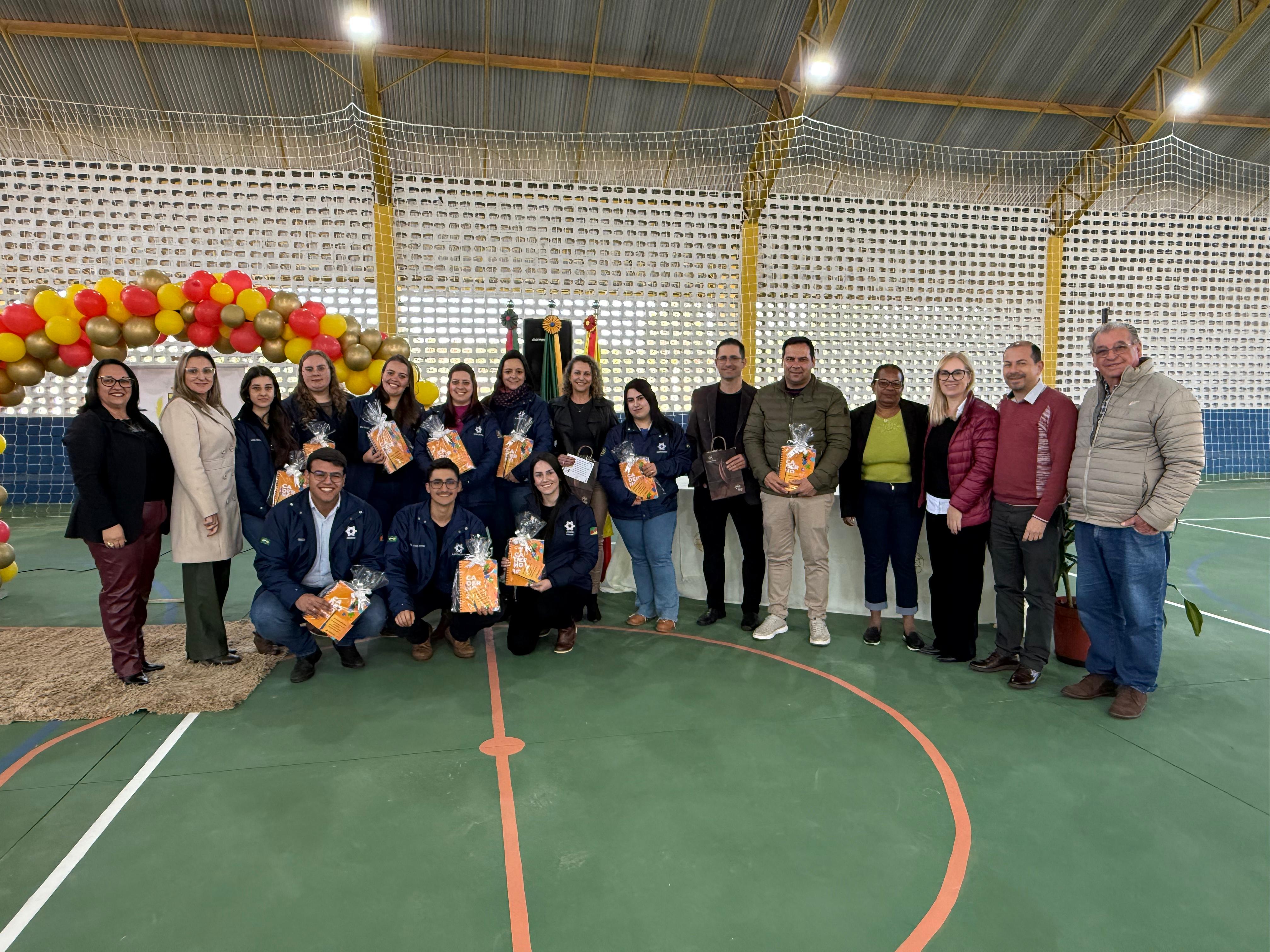 Estudantes da Turma II do Curso de Agronomia do IFFar Campus Júlio de Castilhos, equipe diretiva e professores/as, prestigiaram na manhã de 11 de julho, a cerimônia de revitalização do Ginásio e melhorias na Escola Municipal Fundamental Visconde de Mauá, do bairro Santo Antônio.