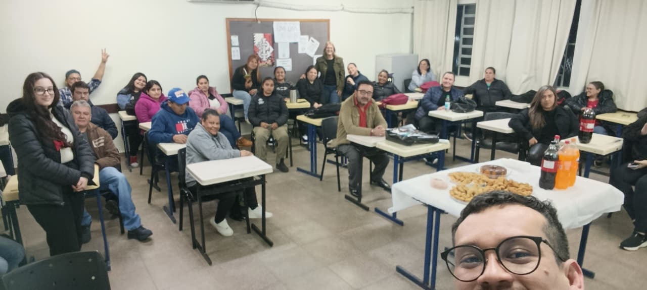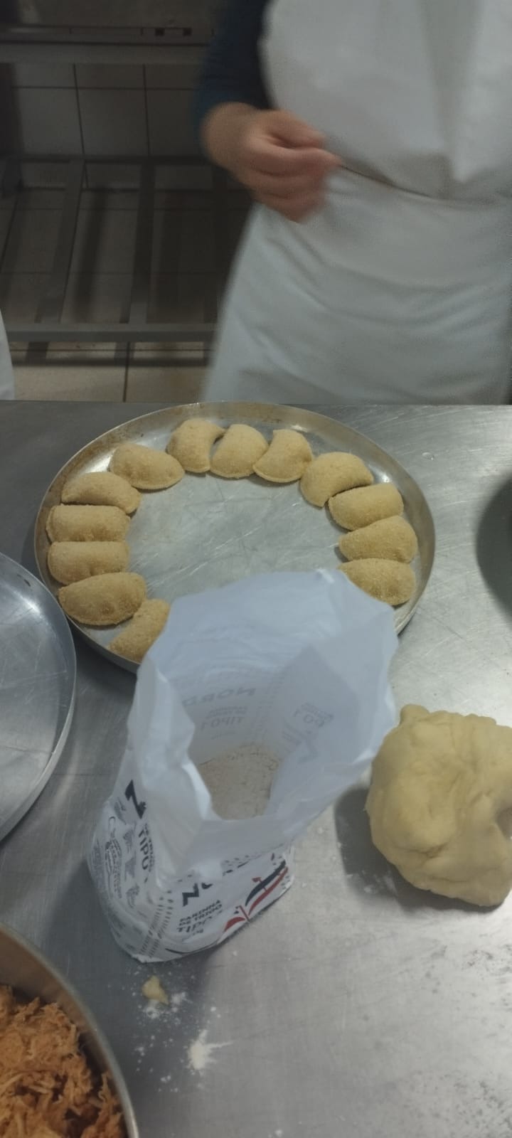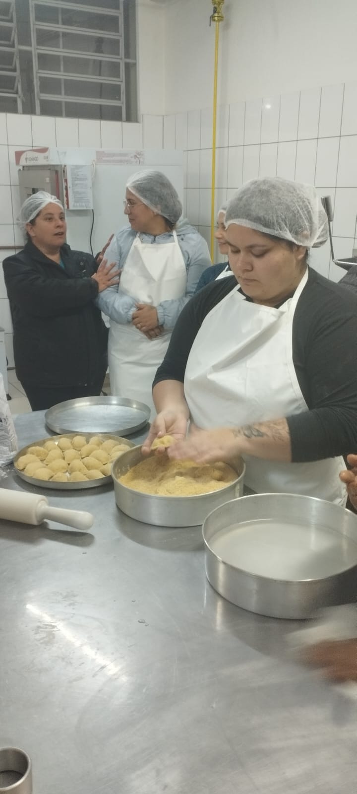 A oficina foi ministrada pela estagiária de Biologia da turma 1A, Jocelaine Gubiani, que ensinou o preparo de risoles. Os/as alunos/as, divididos em grupos, participaram de todas as fases: preparação da massa, montagem, fritura e limpeza do espaço. Ao final, as turmas degustaram os salgados em uma confraternização alusiva ao Dia dos Pais.