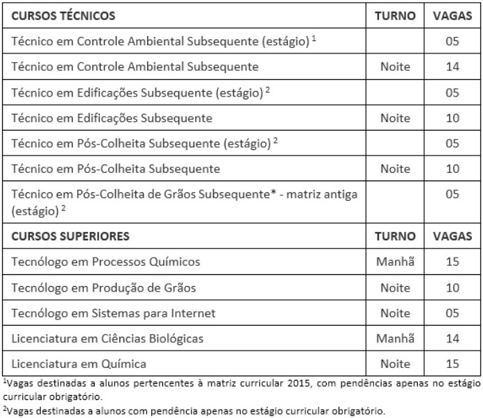 Confira o número de vagas em cada curso na imagem.