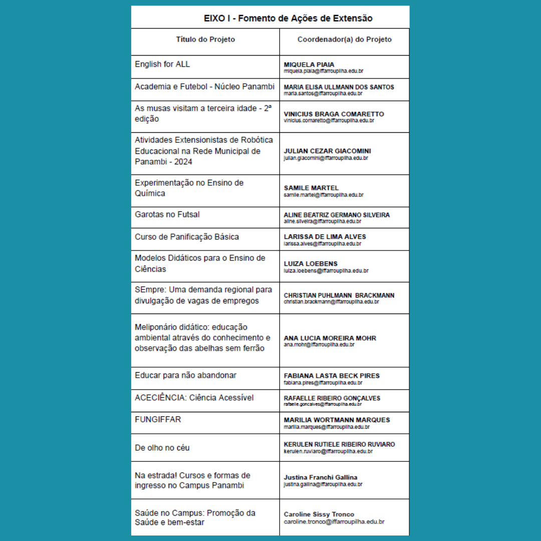 Informações completas: Edital 069/2024 – Disponível em www.iffar.edu.br/panambi > Editais