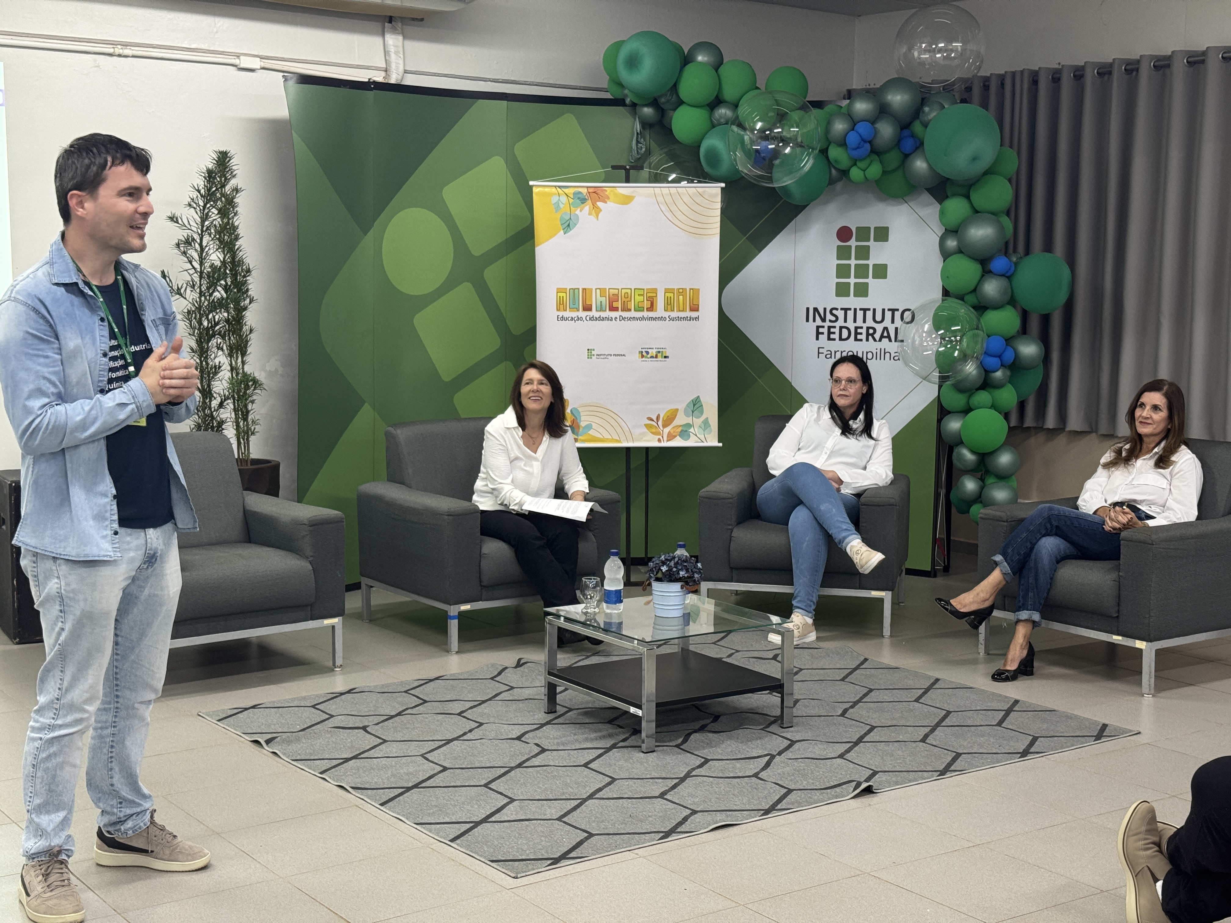 A aula inaugural contou com uma roda de conversa intitulada “Educação que Transforma: o Caminho do Empoderamento Feminino”, conduzida por Solange Molz e Cristina de Britto (Nina).