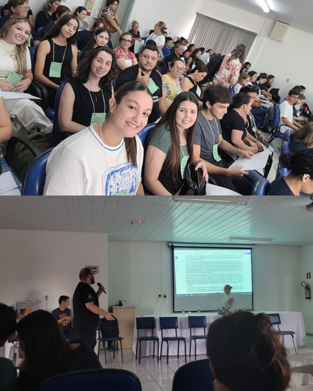 O IFFar - Campus Santo Ângelo, foi convidado a participar, no dia 29 de março de 2025, da 1ª Conferência Municipal de Saúde do Trabalhador e Trabalhadora. Esta conferência traz consigo uma grande importância no que diz respeito aos direitos à saúde dos trabalhadores, sendo um espaço de reavaliação das atuais políticas de saúde relacionadas ao trabalho. Vem com o propósito de discutir o cenário atual dos trabalhadores, analisando problemas e faltas que impossibilitam o avanço na saúde da população, a fim de elaborar e eleger propostas em nível estadual que venham mitigar defeitos, oferecer soluções e melhorias. Se fizeram presentes nesse evento as turmas T1 e T2 do Bacharelado em Enfermagem e turmas T10 e T11 do Curso Técnico em Enfermagem Subsequente.