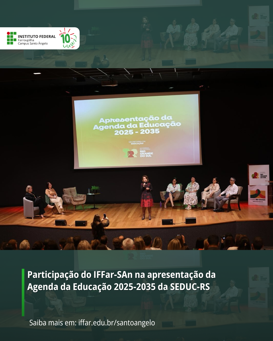 No dia 15 de maio de 2025 a Diretora Geral do IFFar SAn Mariéli T. Krampe Machado e a Diretora de Ensino Cristiane da S. Stamberg participaram, em Ijuí, da apresentação da Agenda da Educação 2025-2035 à convite da Secretaria de Estado da Educação do RS e 14ªCRE.