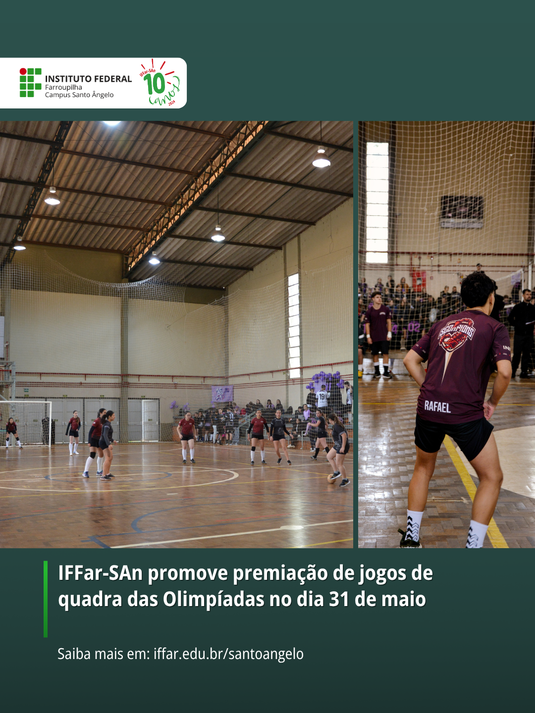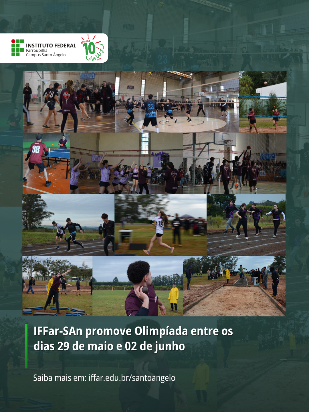 Entre os dias 29 de maio e 2 de junho, o IFFar – Campus Santo Ângelo promoveu mais uma edição da aguardada Olimpíada IFFar-SAn, mobilizando estudantes dos cursos técnicos integrados ao ensino médio em quatro dias de competição, convivência e superação! ??