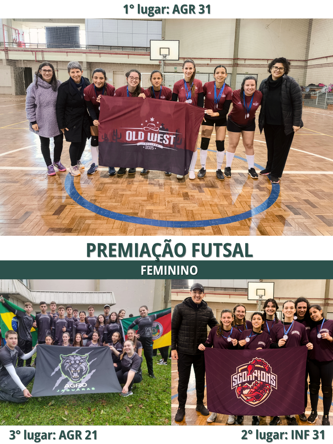 Feminino: 1º lugar – AGR 31 | 2º lugar – INF 31 | 3º lugar – AGR 21