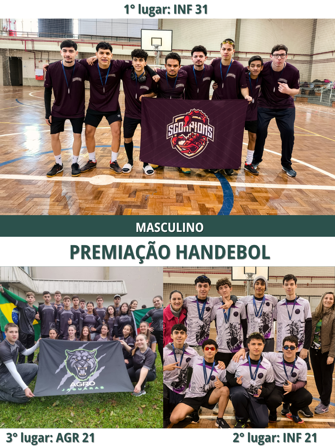 Masculino: 1º lugar – INF 31 | 2º lugar – INF 21 | 3º lugar – AGR 21