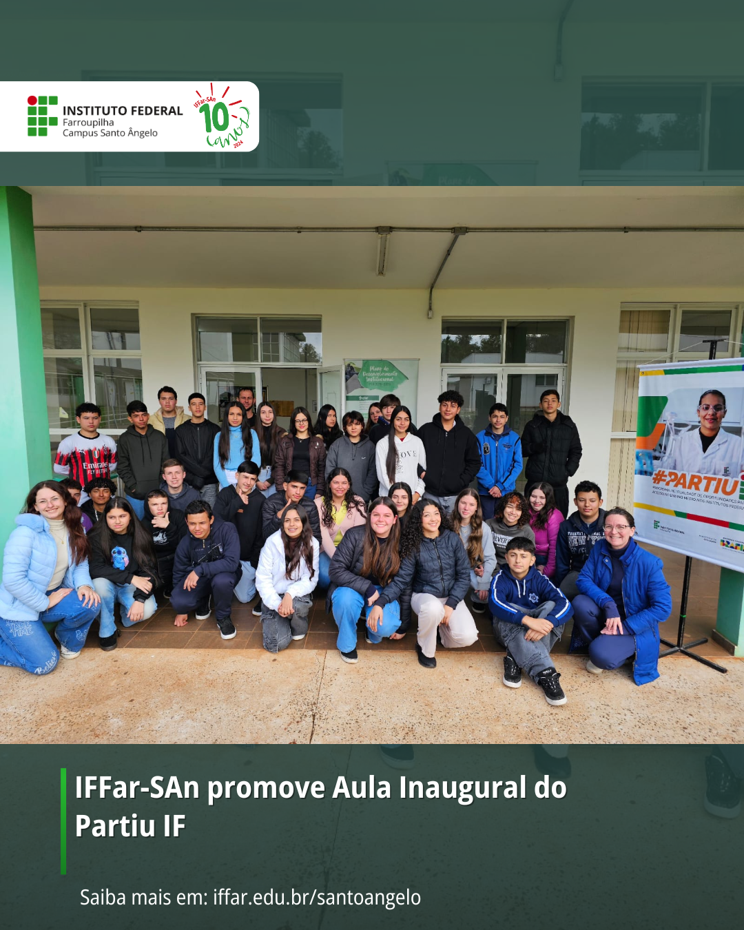 A aula inaugural teve como objetivo apresentar aos estudantes a instituição, o funcionamento do curso e a equipe de profissionais e monitores que atuarão no programa. Os estudantes foram recepcionados pela Banda InFFames (Projeto de Ensino da disciplina de Arte). Na sequência, a Diretora Geral Mariéli Machado apresentou a rede federal de educação e a instituição (IFFar), em específico os cursos ofertados no campus Santo Ângelo ressaltando que ao longo do curso os estudantes podem participar de projetos de ensino e extensão, que complementam a formação e também aproximam escola e comunidade.