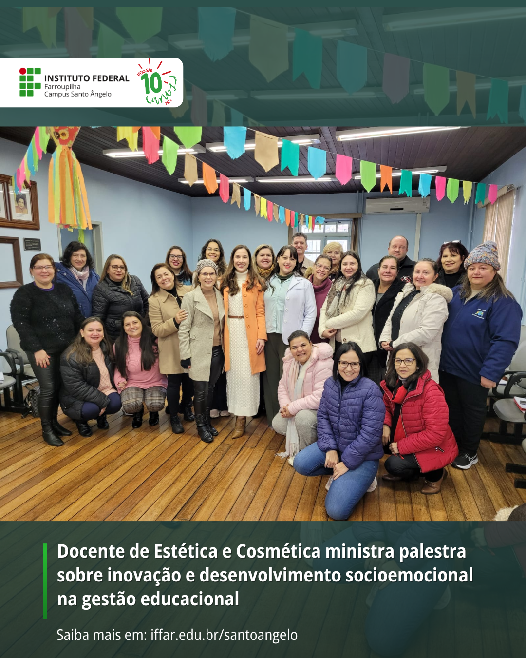 No dia 26 de junho de 2025, a docente Dra. Zípora Morgana, coordenadora do Curso Superior de Tecnologia em Estética e Cosmética, esteve na Secretaria Municipal de Educação de Santo Ângelo, onde ministrou a palestra “O papel da inovação e do desenvolvimento socioemocional na gestão educacional” durante a reunião de diretores.