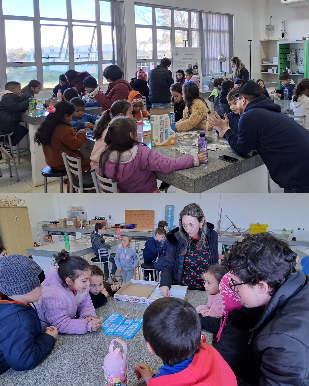 Durante a programação, as crianças conheceram diversos ambientes e participaram de atividades lúdicas e educativas, conduzidas por servidores e estudantes do IFFar-SAn. Os espaços visitados incluíram: