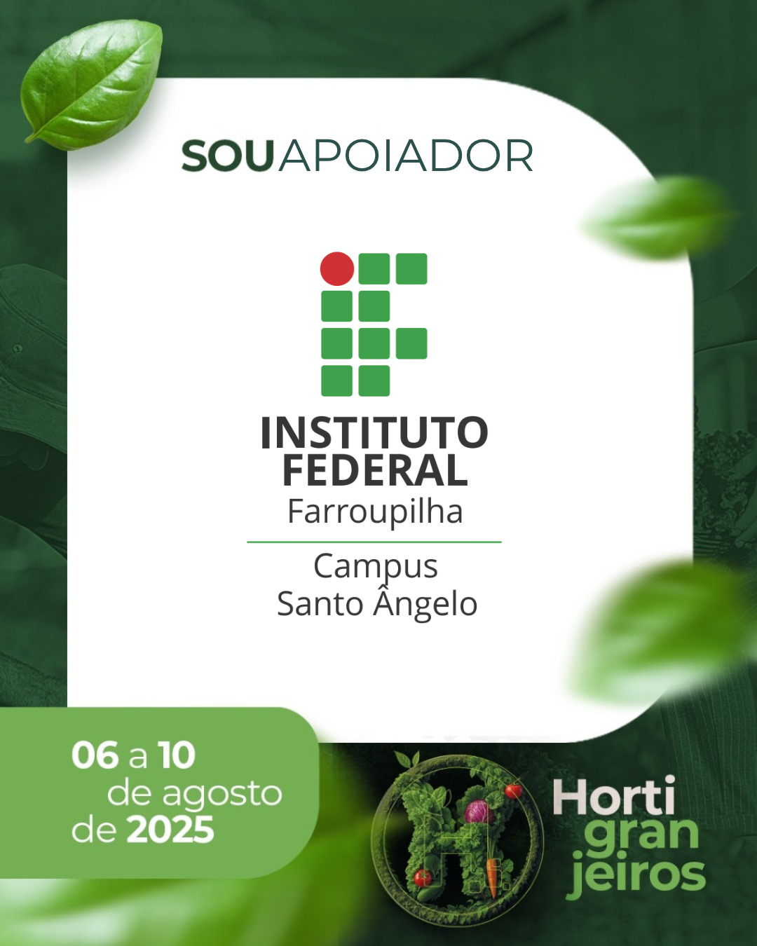 O IFFar - Campus Santo Ângelo é apoiador da 35ª Hortigranjeiros e estará presente no espaço HortiShow, de 6 a 10 de agosto, com canteiros demonstrativos de plantas bioativas, flores comestíveis, Plantas Alimentícias Não Convencionais (PANC), tecnologias e inovações para a horticultura.