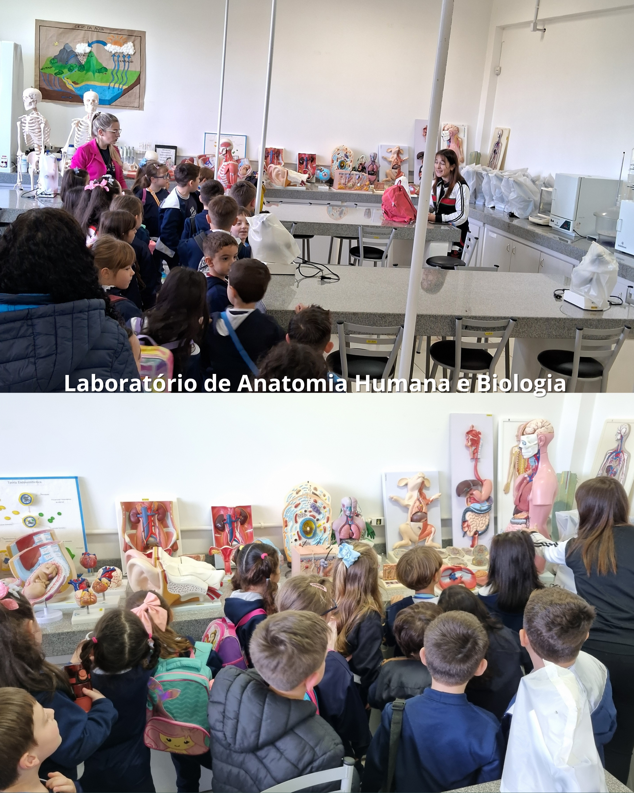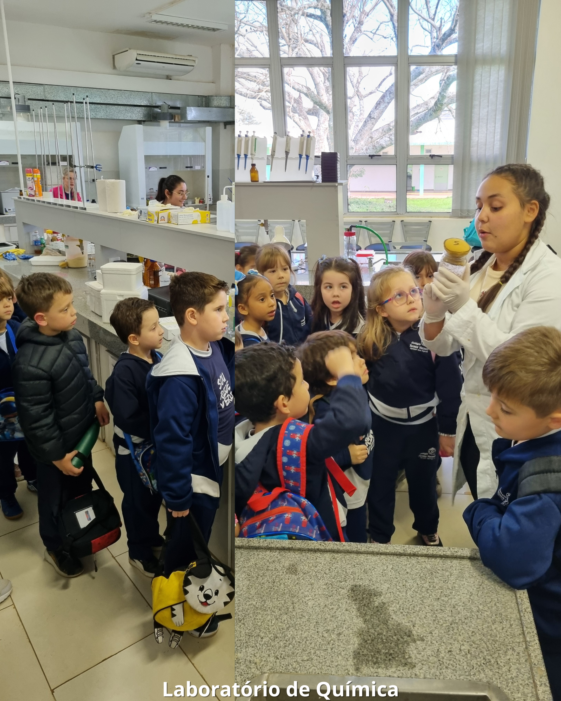 A turma, composta por 26 crianças com idades entre 5 e 6 anos, participou de atividades do Projeto de Extensão do Clube de Astronomia e também visitou o laboratório de Anatomia Humana e Biologia e o laboratório de Química do IFFar.