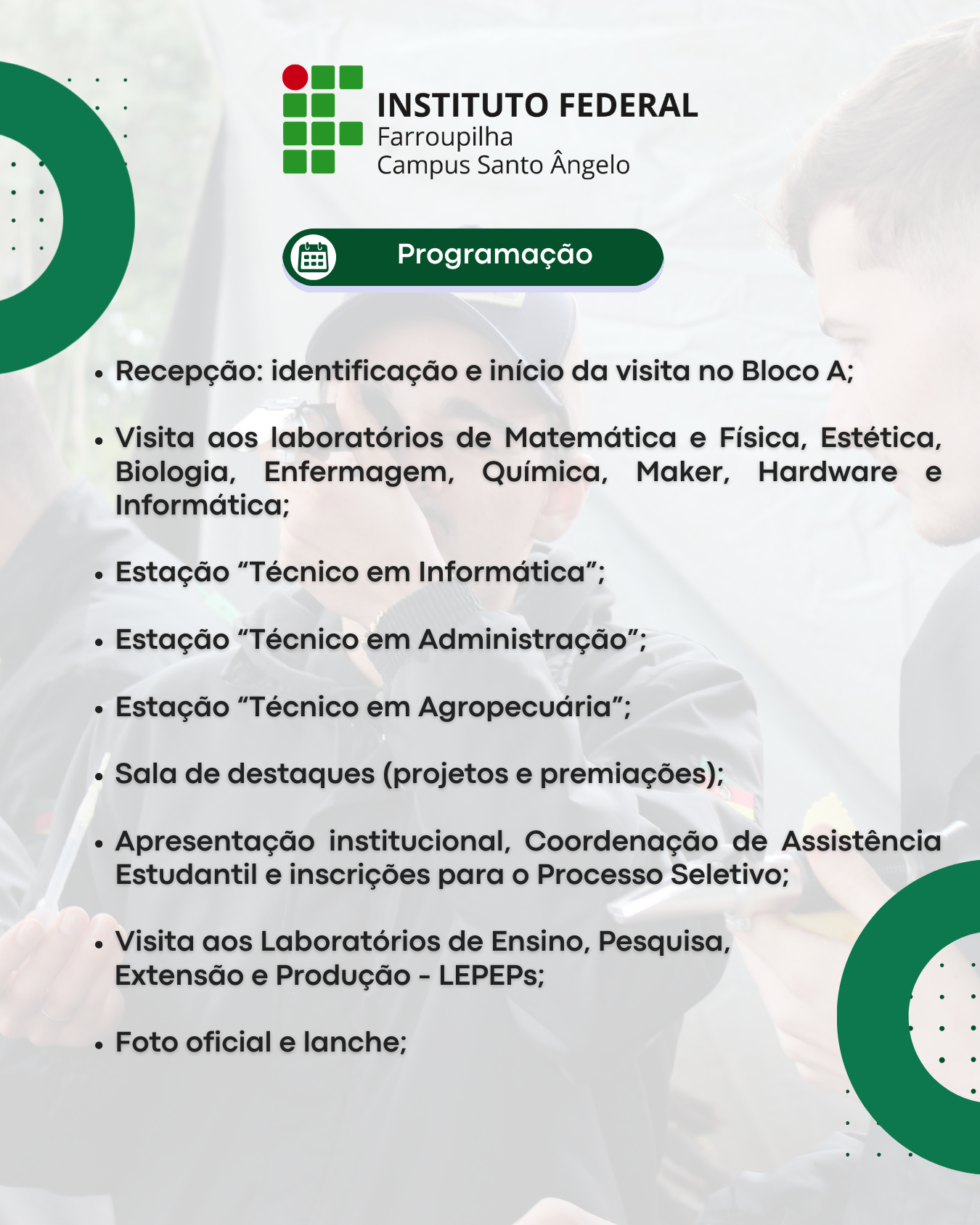Página inicial > Santo Ângelo > Vem aí o Conhecendo o IFFar - Campus Santo Ângelo 2025 - Cursos Técnicos Integrados!