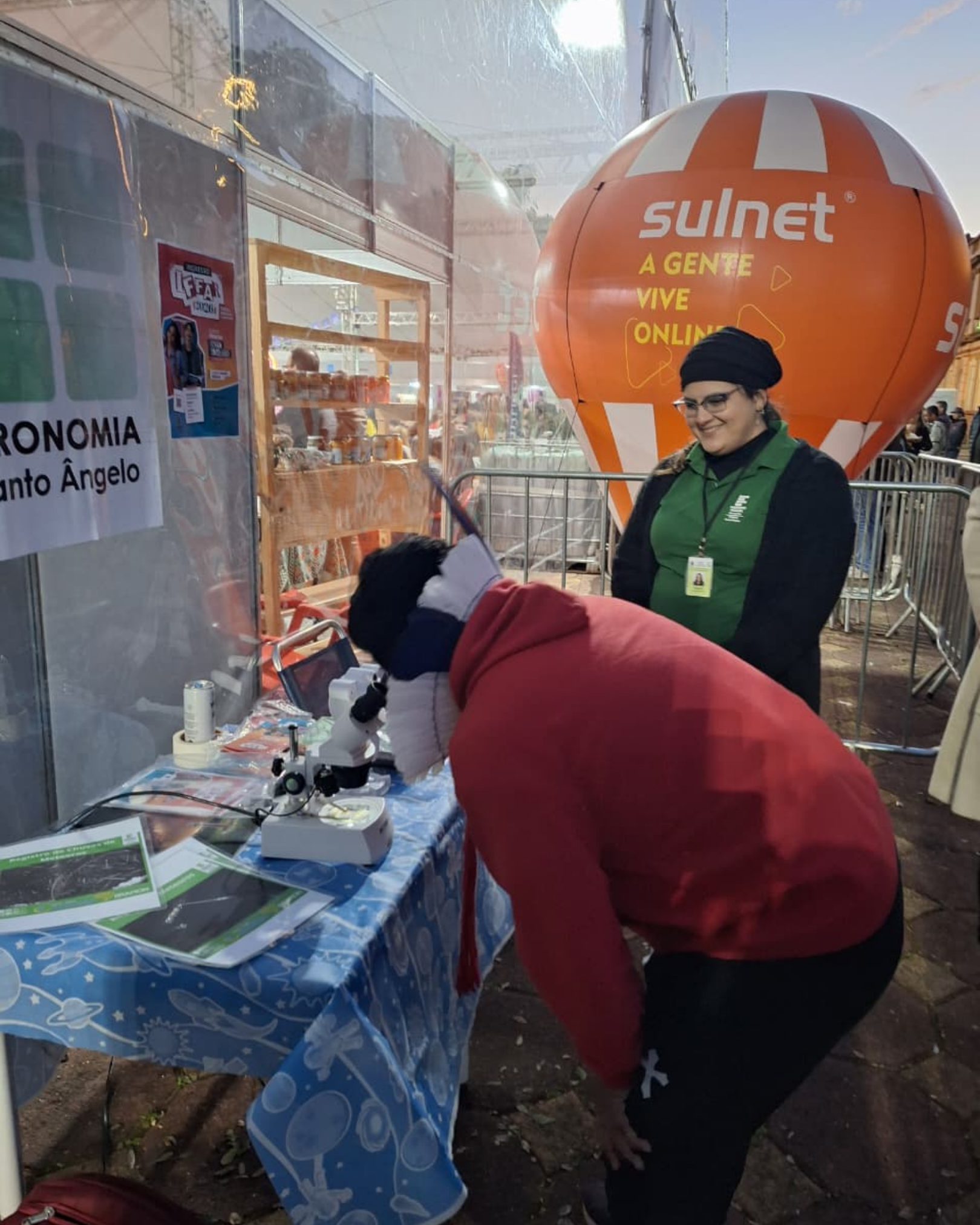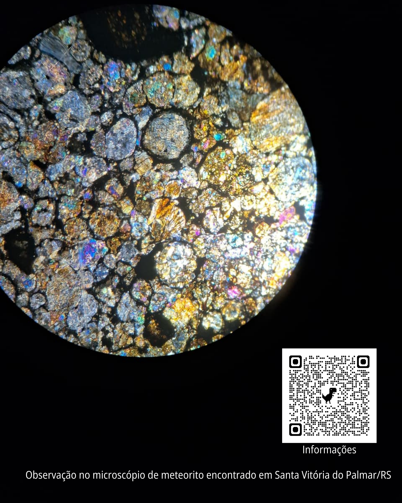 Com o uso de um telescópio, visitantes puderam observar de perto a Lua e suas crateras, despertando a curiosidade e o interesse pela exploração do universo. Além disso, o grupo apresentou um fragmento de meteorito encontrado em Santa Vitória do Palmar/RS, disponibilizado para visualização em microscópio, possibilitando ao público conhecer mais sobre esse material raro que chega até a Terra vindo do espaço. Mais informações podem ser encontradas no link: https://share.google/rHdyGHnrNxCPZVq9M