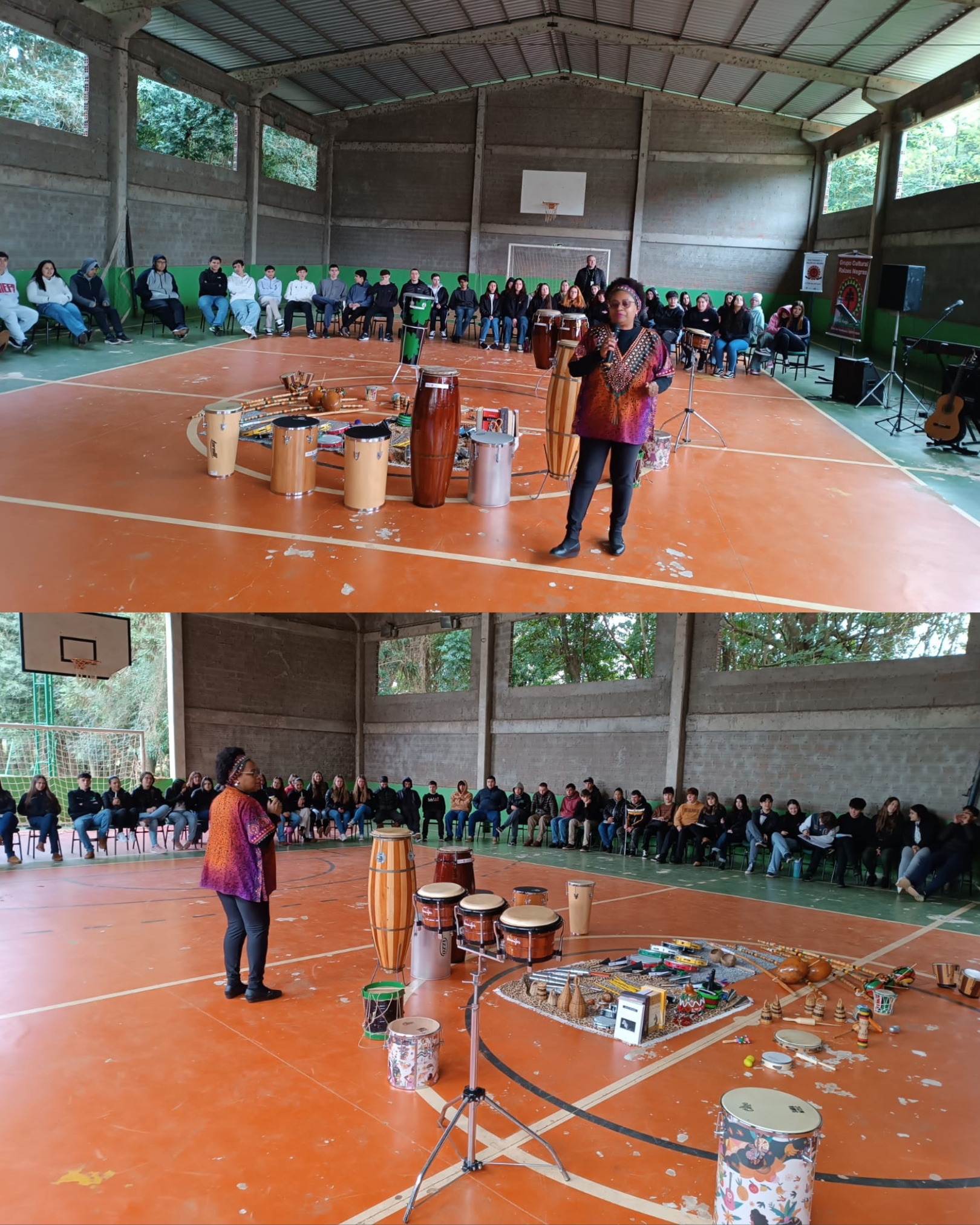 No último dia 25 de agosto, o Núcleo de Estudos Afro-brasileiros e Indígenas (NEABI) proporcionou aos alunos do Ensino Médio Integrado uma oficina de instrumentos africanos conduzida pelo Grupo Cultural Negras Raízes, presidido por Dóris Noemia da Silva Pereira.