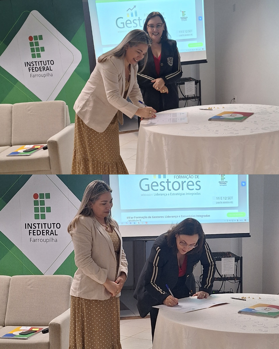 Na manhã do dia 11 de setembro de 2025, a Diretora-Geral do Campus Santo Ângelo, professora Mariéli Terezinha Krampe Machado, foi oficialmente empossada pela Reitora Nidia Heringer. A cerimônia foi realizada na Reitoria do Instituto Federal Farroupilha em Santa Maria. A solenidade marcou o início do Módulo II do Seminário de Gestores do IFFar.