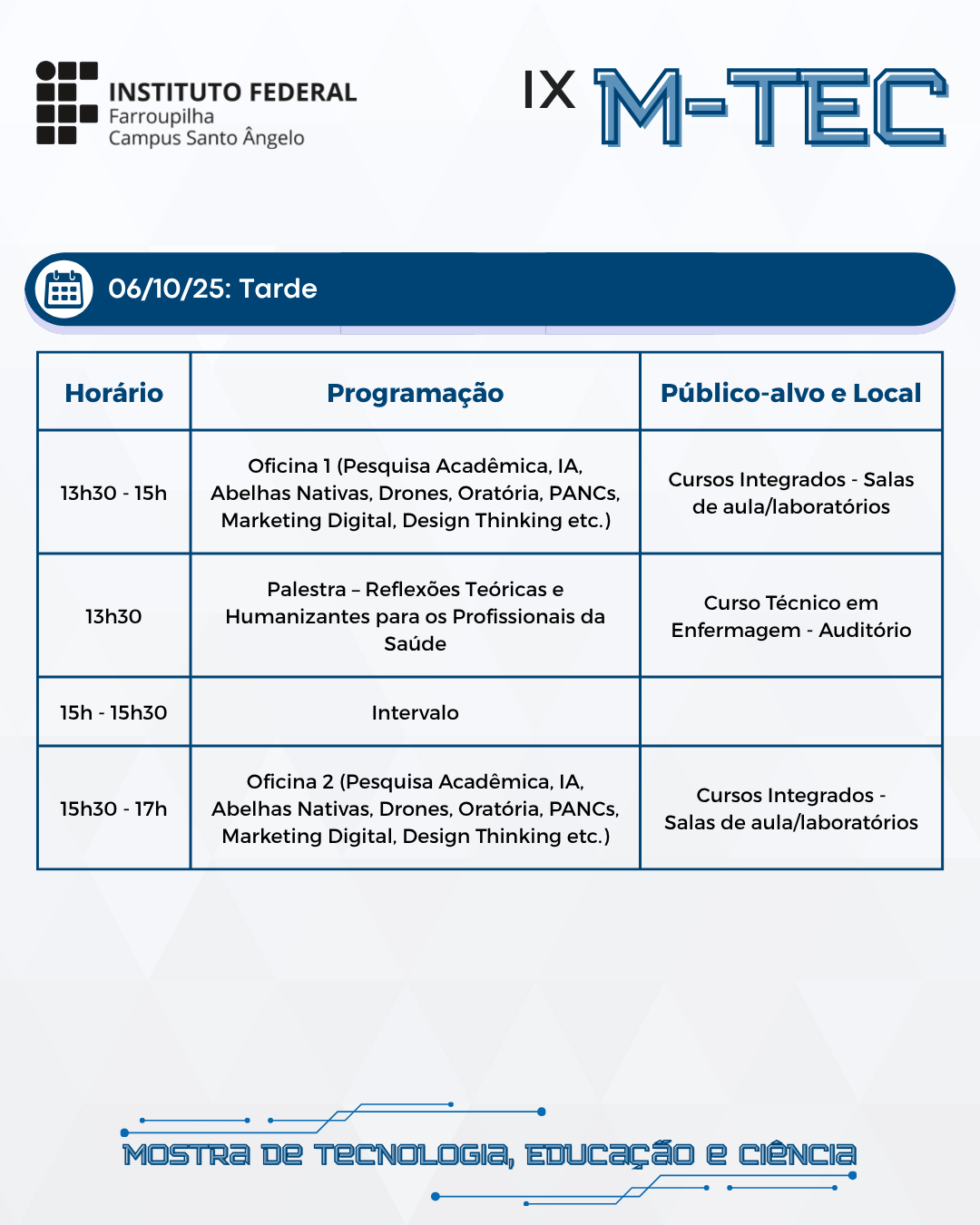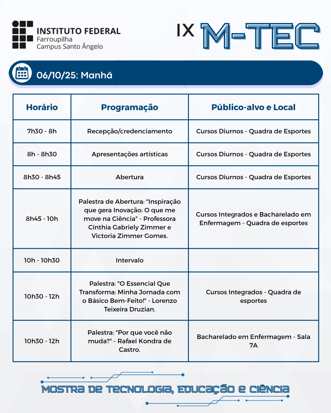 A IX M-TEC começa nos próximos dias no IFFar-SAn - Confira a programação geral