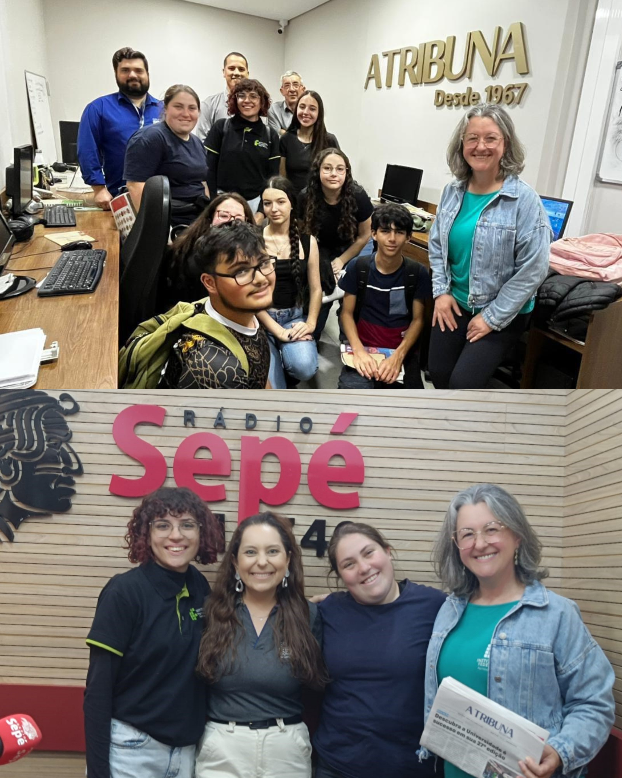 Na ocasião, o grupo de estudantes, acompanhados pela professora, foram recepcionados pela equipe de jornalismo do Grupo Sepé e tiveram a oportunidade de conhecer a redação do Jornal A Tribuna, os estúdios da Rádio Sepé e da Rádio Clube FM, bem como as demais dependências do Grupo Sepé de Comunicações.