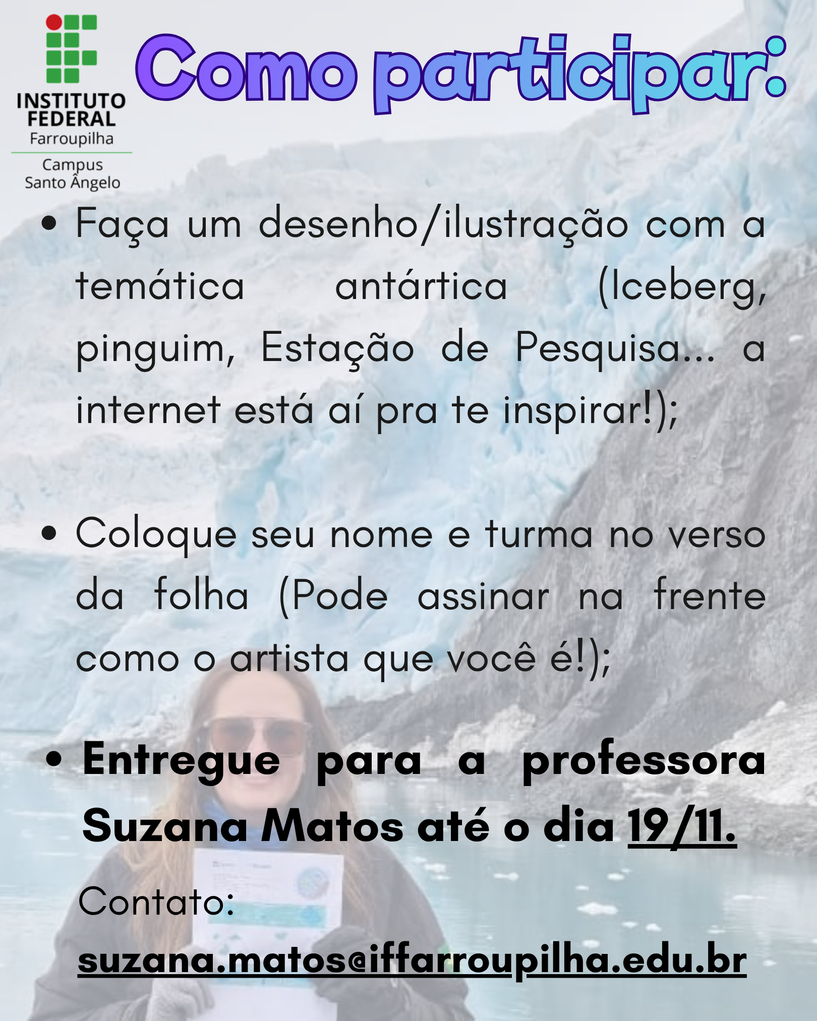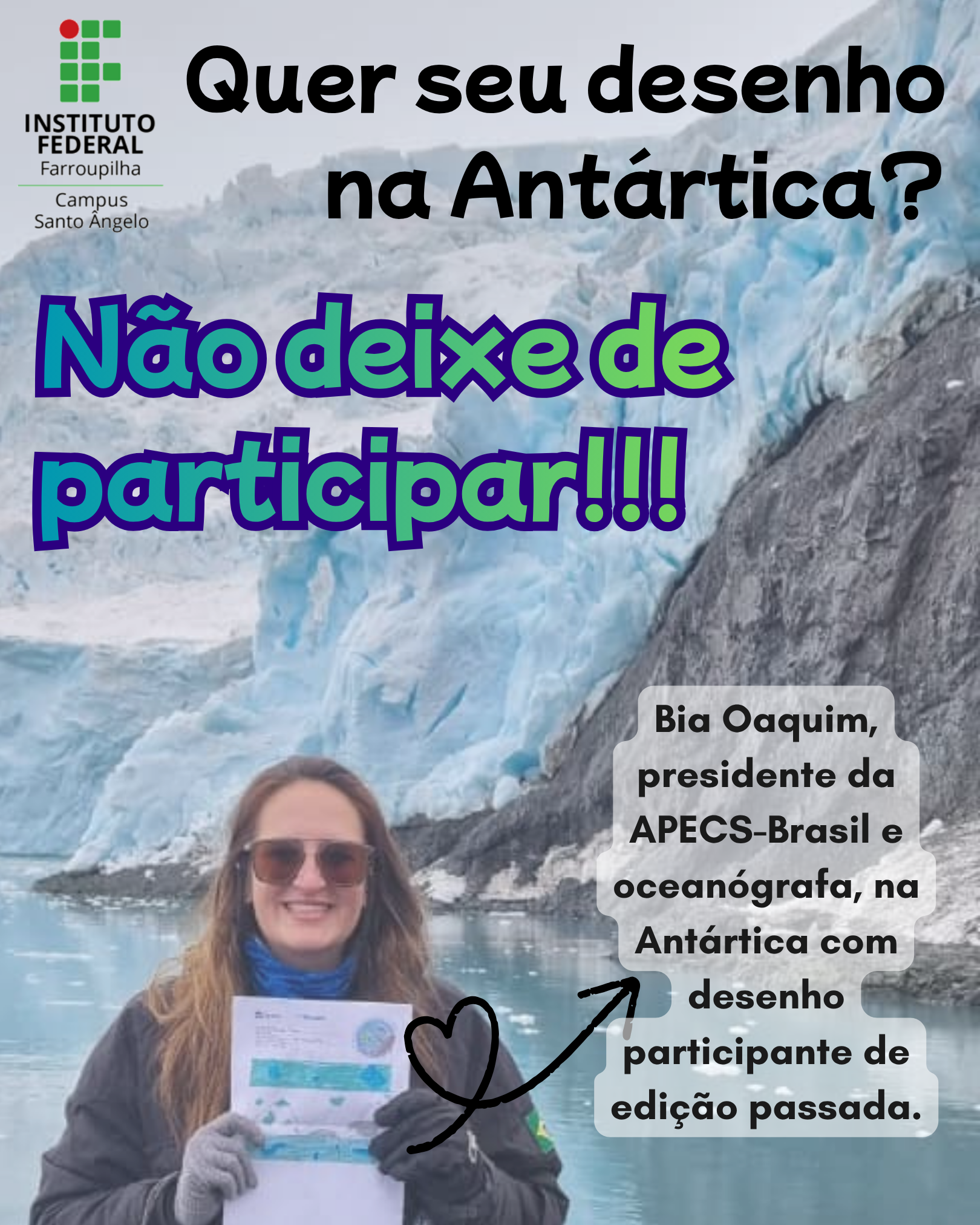 Os trabalhos farão parte de um mural especial no campus, e 5 desenhos serão selecionados para representar o IFFar-SAn nas redes da APECS-Brasil — e até mesmo na Estação Antártica Comandante Ferraz!