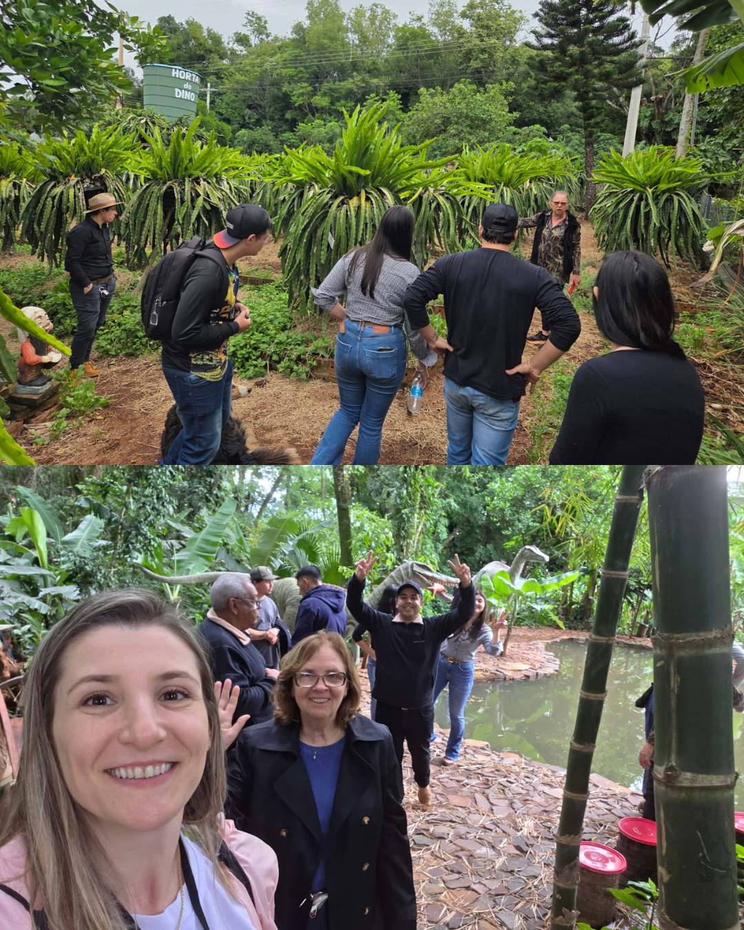 No Serro Azul Ornamentais, a turma conheceu padrões de raças, manejo reprodutivo e sanitário, biosseguridade, bem-estar, registros zootécnicos e critérios de julgamento em exposições, além de estratégias de mercado para o segmento de aves ornamentais. Na Horta do Dino, os estudantes observaram manejo orgânico, compostagem, planejamento de canteiros, colheita e comercialização de proximidade, com ênfase em educação ambiental e segurança do alimento no ambiente urbano.