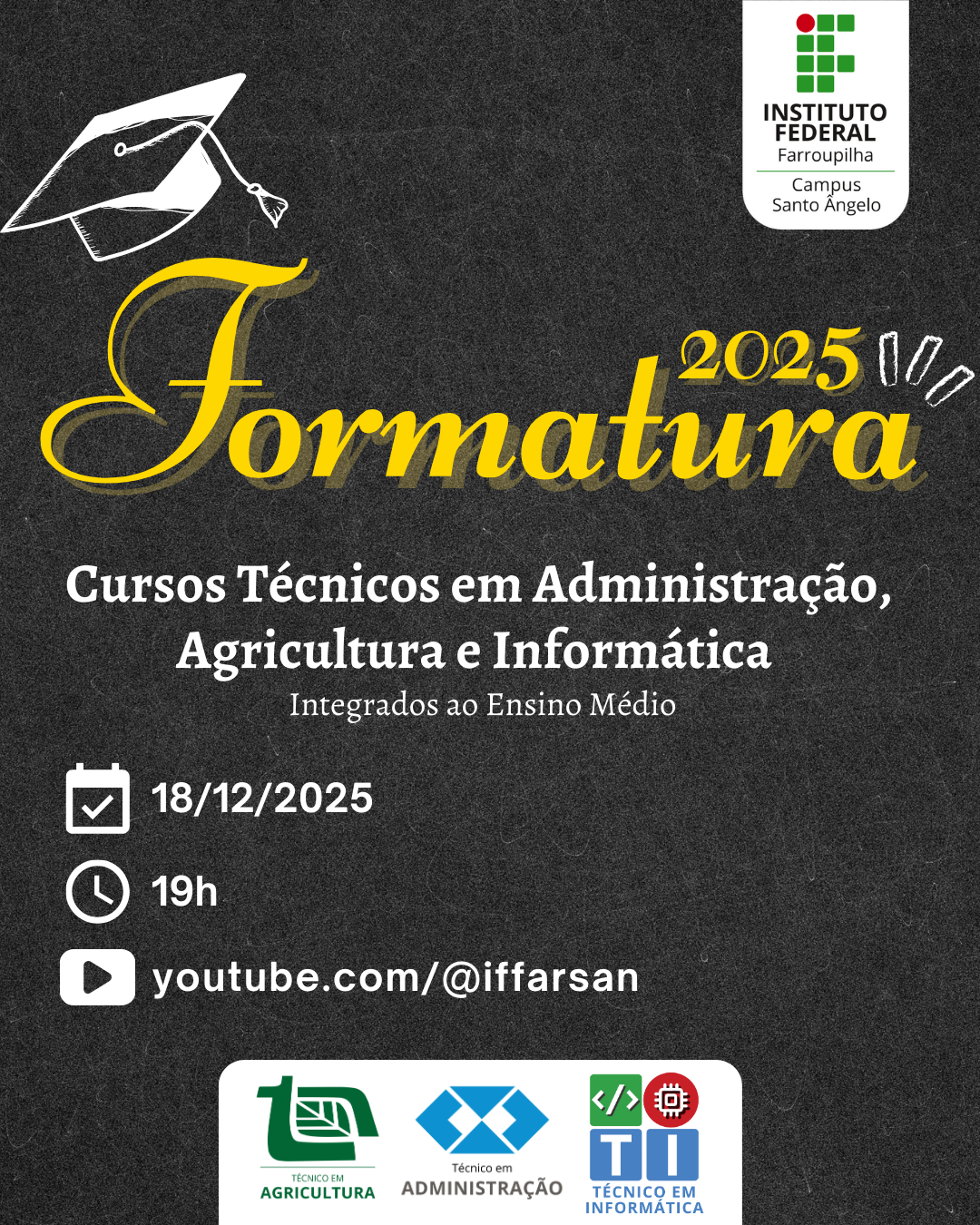 IFFar – Campus Santo Ângelo realizará transmissões das Formaturas 2025 dos Cursos Técnicos