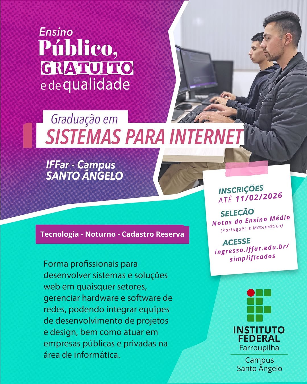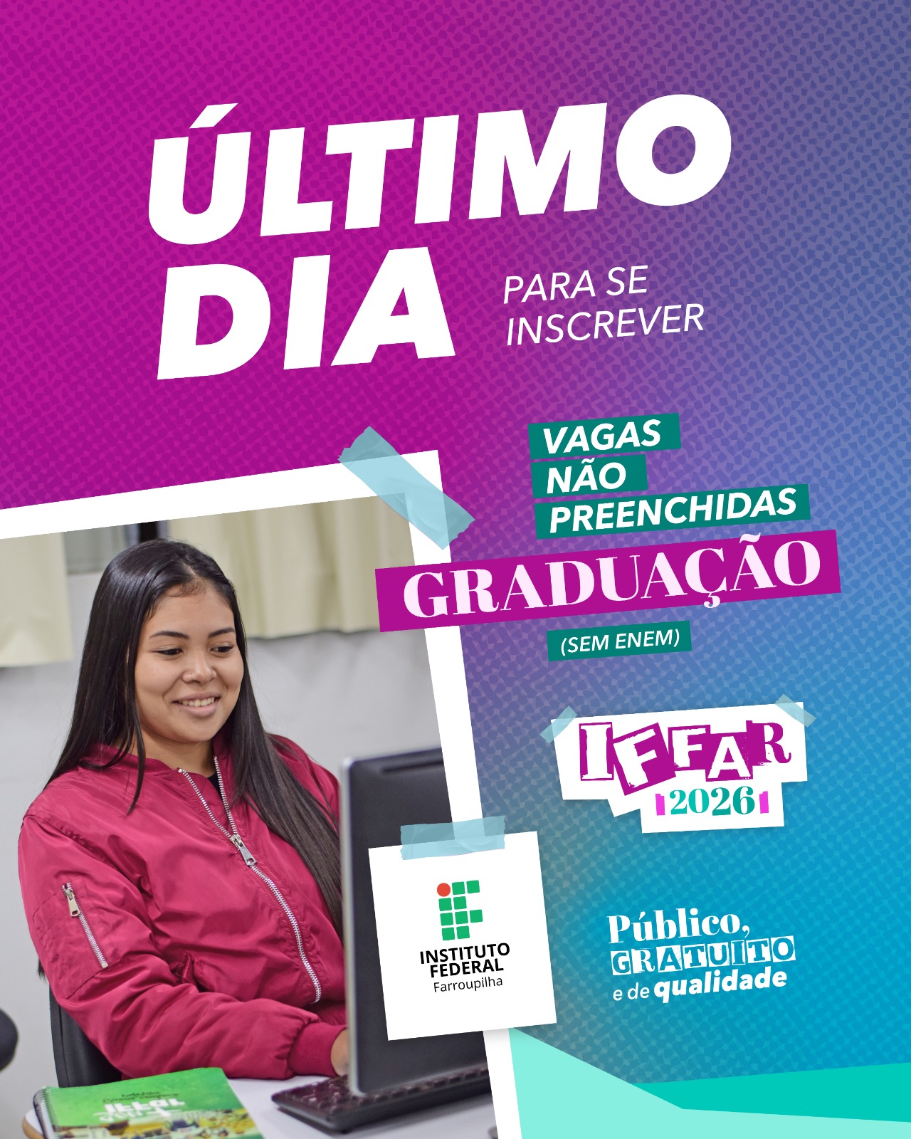 Hoje, 11 de fevereiro, é o último dia para se inscrever gratuitamente no Processo Seletivo Simplificado dos Cursos de Graduação do IFFar.