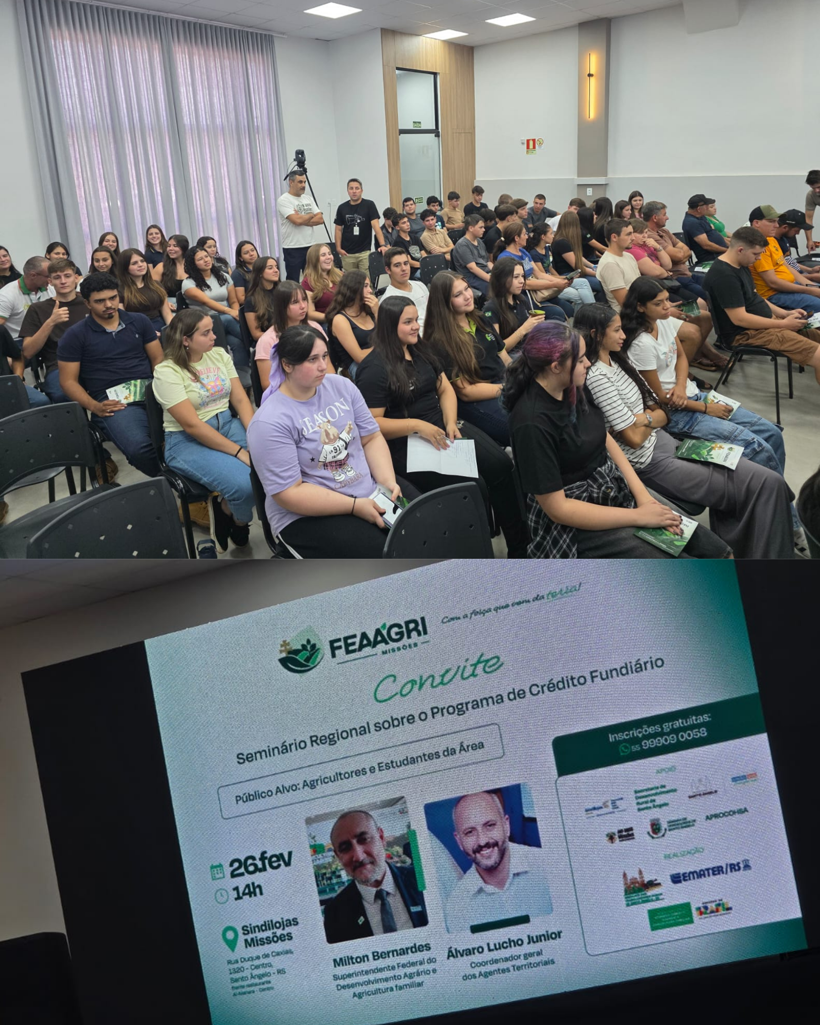 No último dia 26 de fevereiro, alunos dos Cursos Técnicos Integrados em Agricultura e Agropecuária do Instituto Federal Farroupilha – Campus Santo Ângelo marcaram presença no Seminário Regional sobre o Programa Nacional de Crédito Fundiário. O evento, realizado no Sindilojas Missões, reuniu mais de 160 participantes para debater o acesso à terra e o fortalecimento da agricultura familiar na região das Missões.