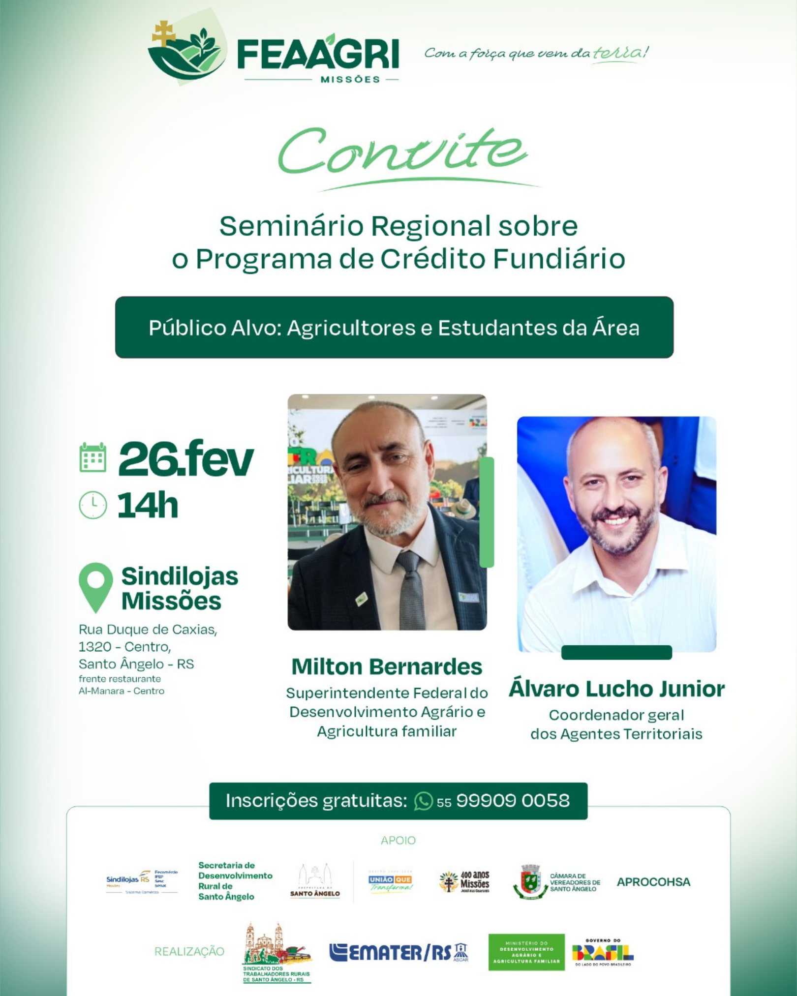 A participação dos estudantes foi estratégica, uma vez que o público jovem é um dos pilares do programa para garantir a sucessão rural. Durante o seminário, os alunos puderam ouvir diretamente de autoridades como Milton Bernardes (Superintendente do MDA/RS) e Álvaro Lucho Junior (Coordenador-geral dos Agentes Territoriais) sobre as linhas de financiamento que permitem a compra de imóveis rurais e a implementação de projetos produtivos.
