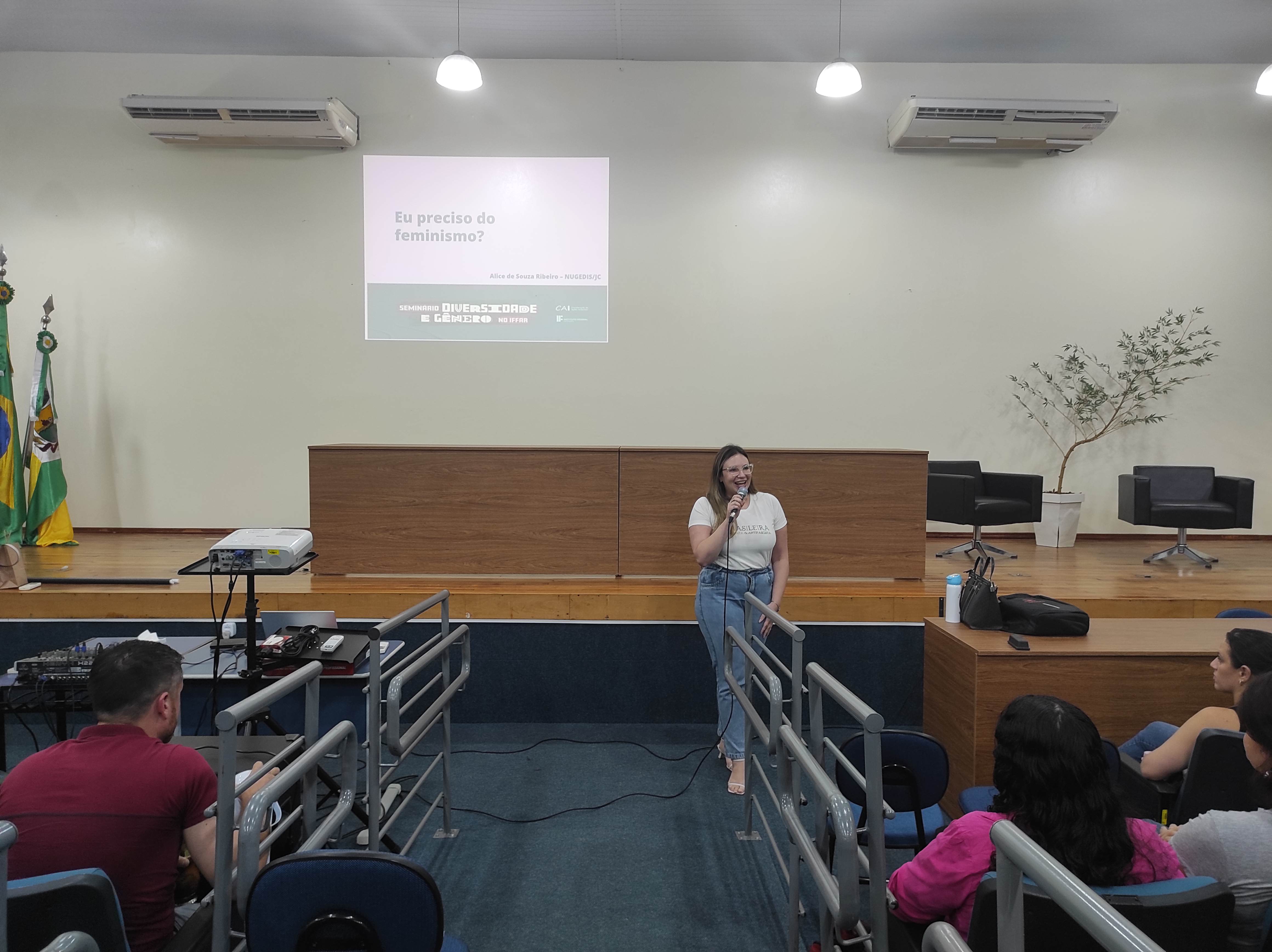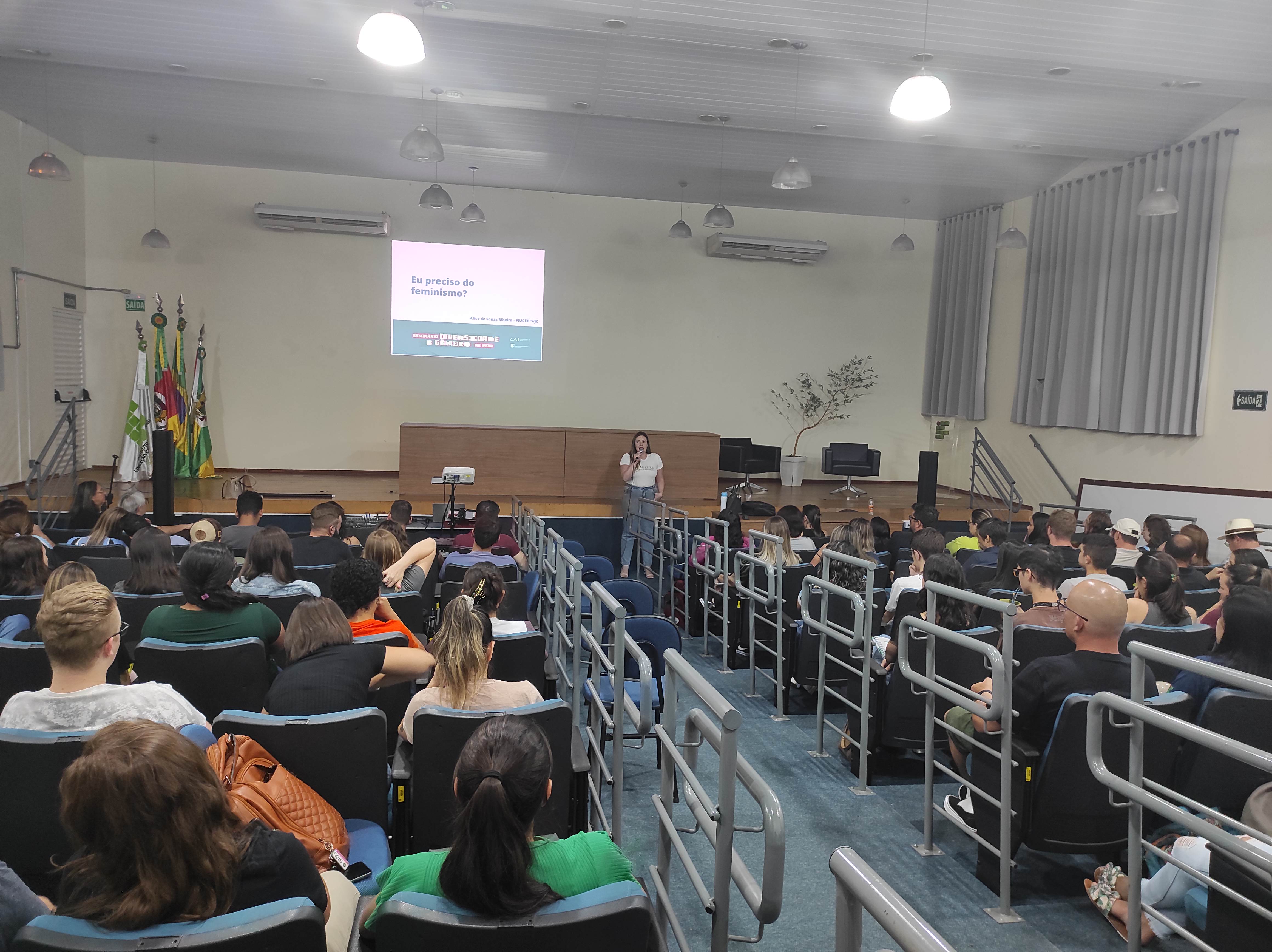 Após o filme, a representante do NUGEDIS do Campus Júlio de Castilhos, Alice Ribeiro, ministrou palestra com o tema “Eu preciso do feminismo?”. A palestra também foi realizada na segunda-feira à noite, para os estudantes dos cursos superiores.