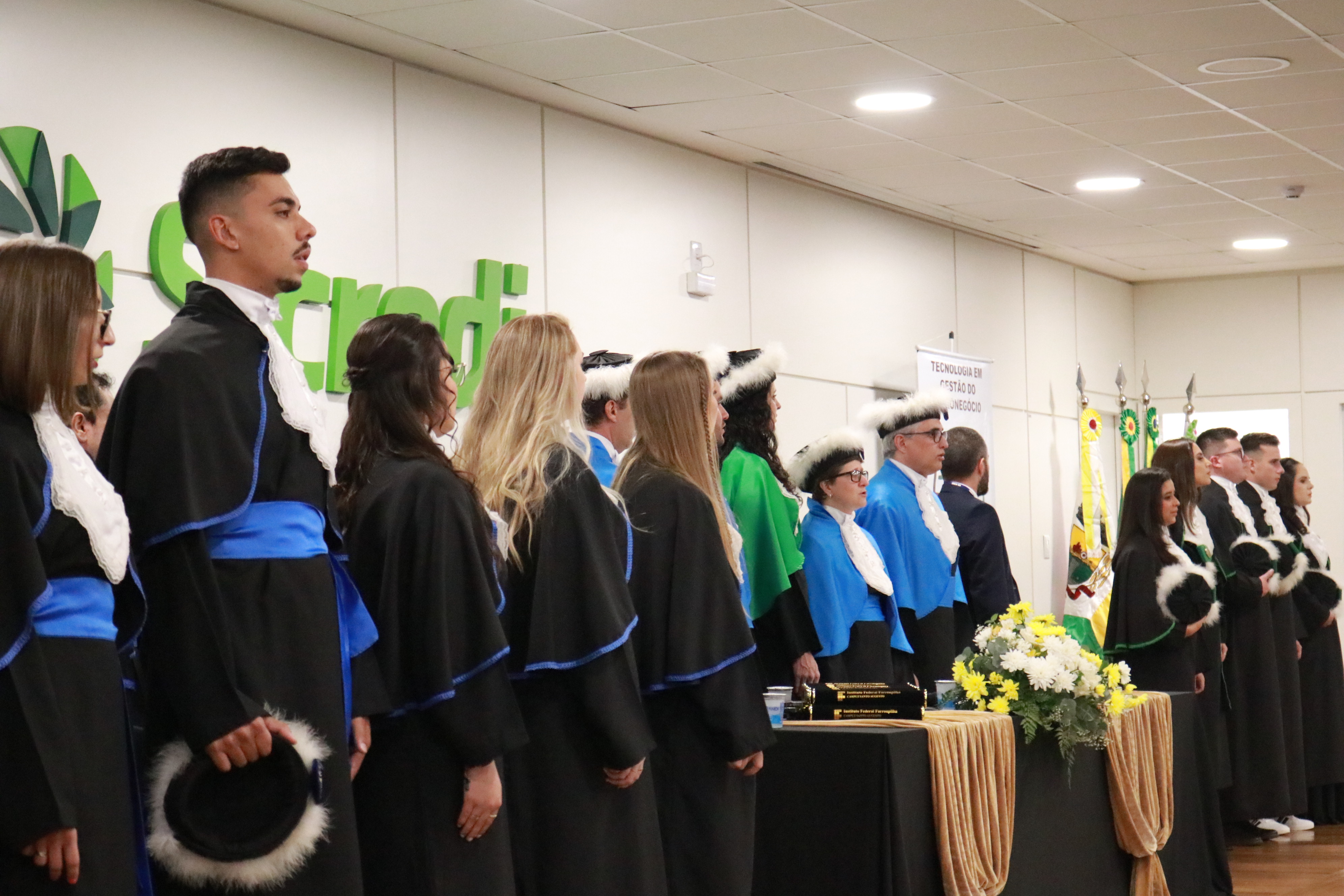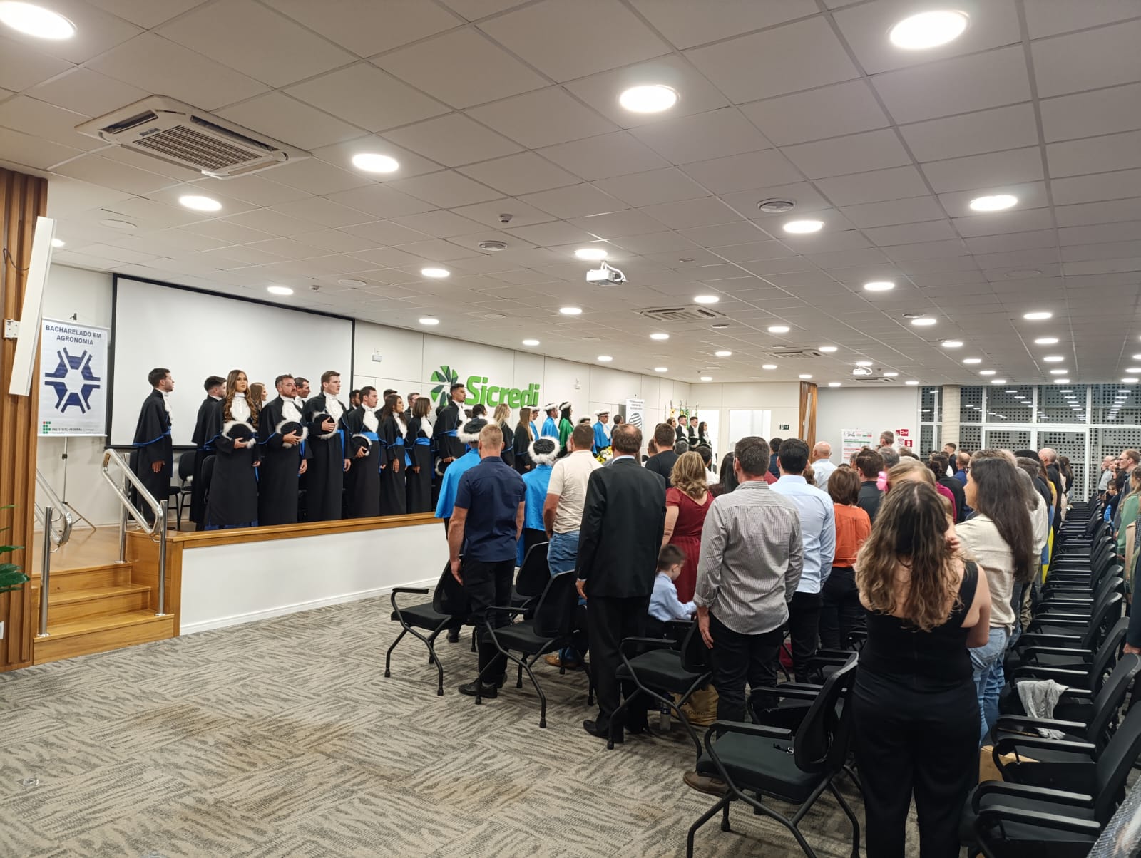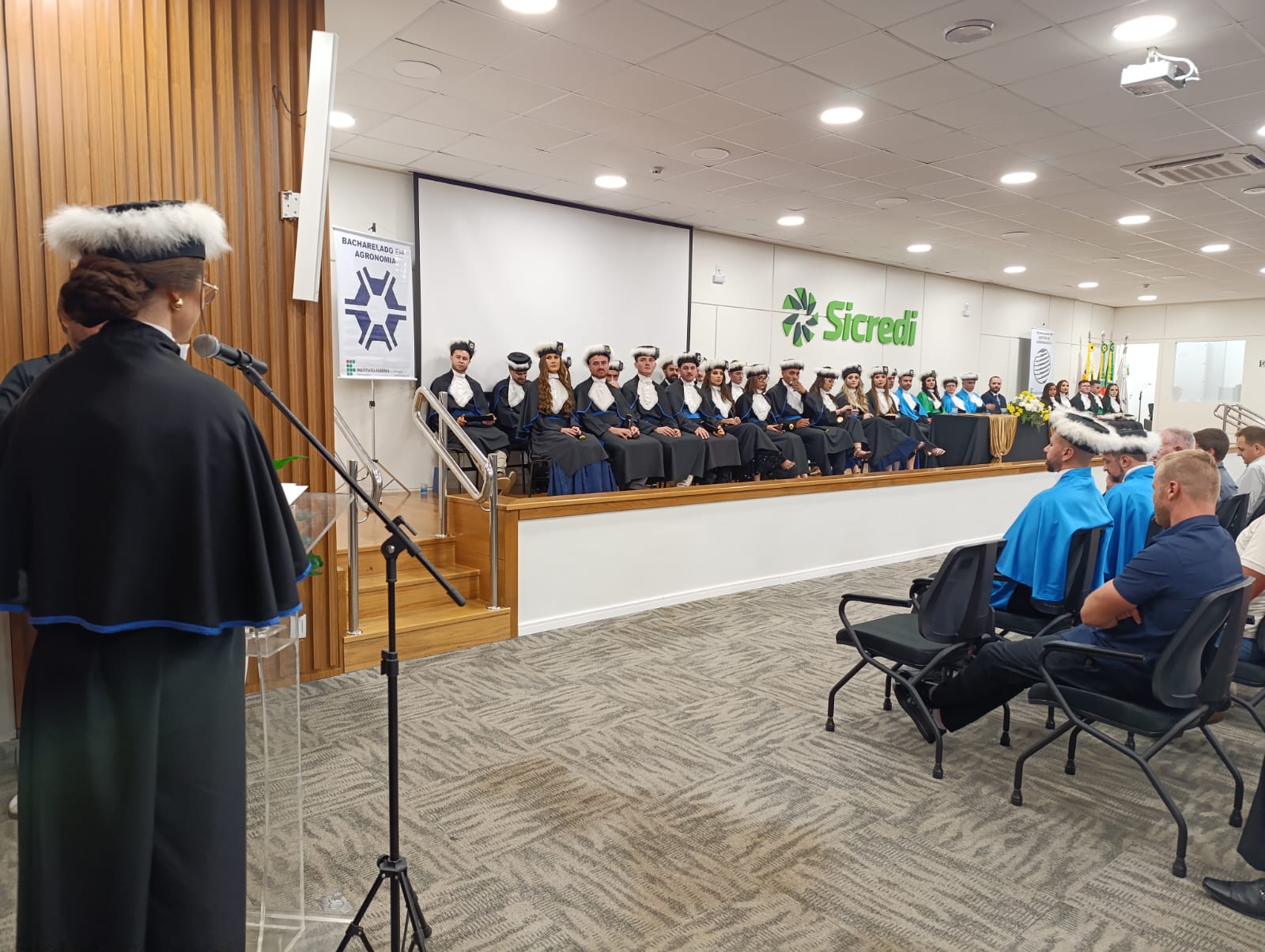 A Diretora Márcia em seu discurso agradeceu ao Sicredi pela cedência do espaço e destacou que a formatura é um marco significativo não apenas na trajetória dos graduandos, mas também para toda a instituição, que se dedica a formar profissionais qualificados e comprometidos com o desenvolvimento do agronegócio e a sustentabilidade, sempre em busca de melhorar a sociedade em que estão inseridos. “A educação é um pilar fundamental para o progresso da sociedade, e é uma honra para nós termos contribuído para a formação de indivíduos que sem dúvida, farão a diferença em suas áreas de atuação”.